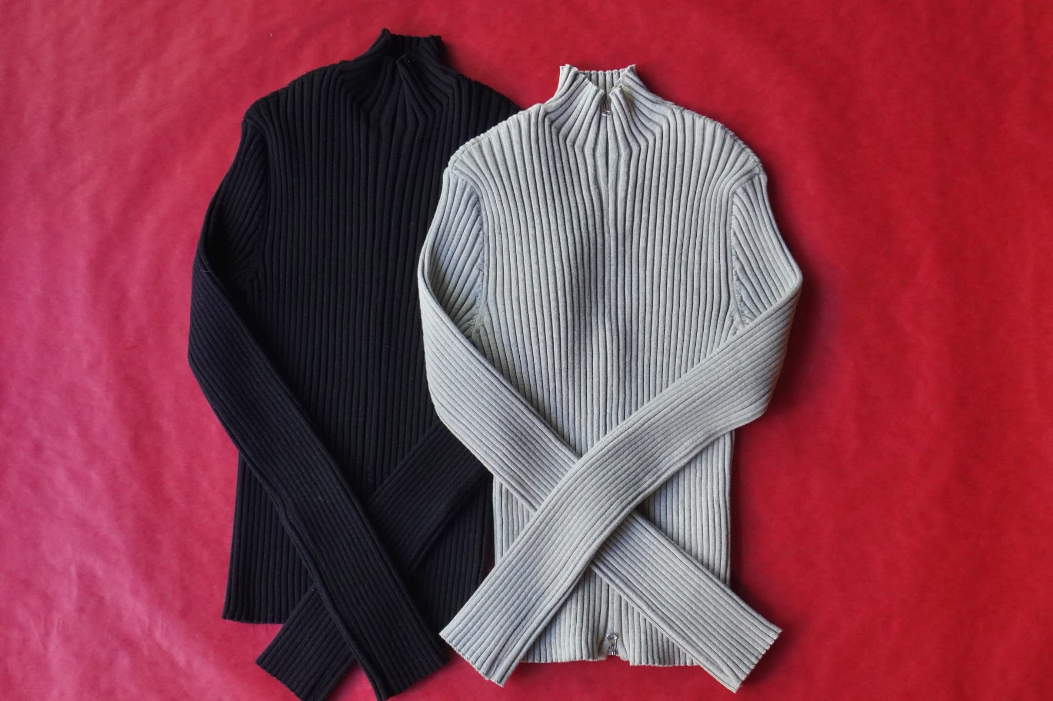 “RIBBED HIGH NECK ZIP UP”