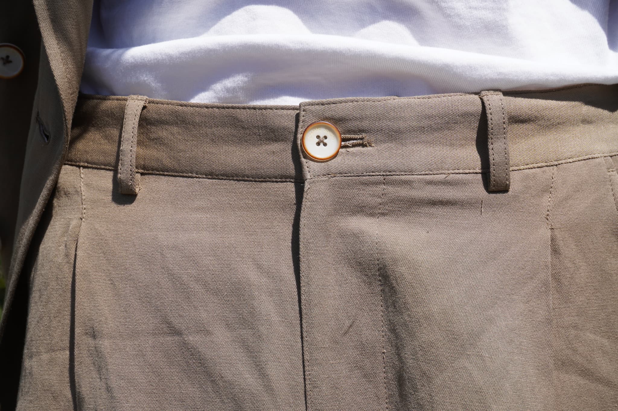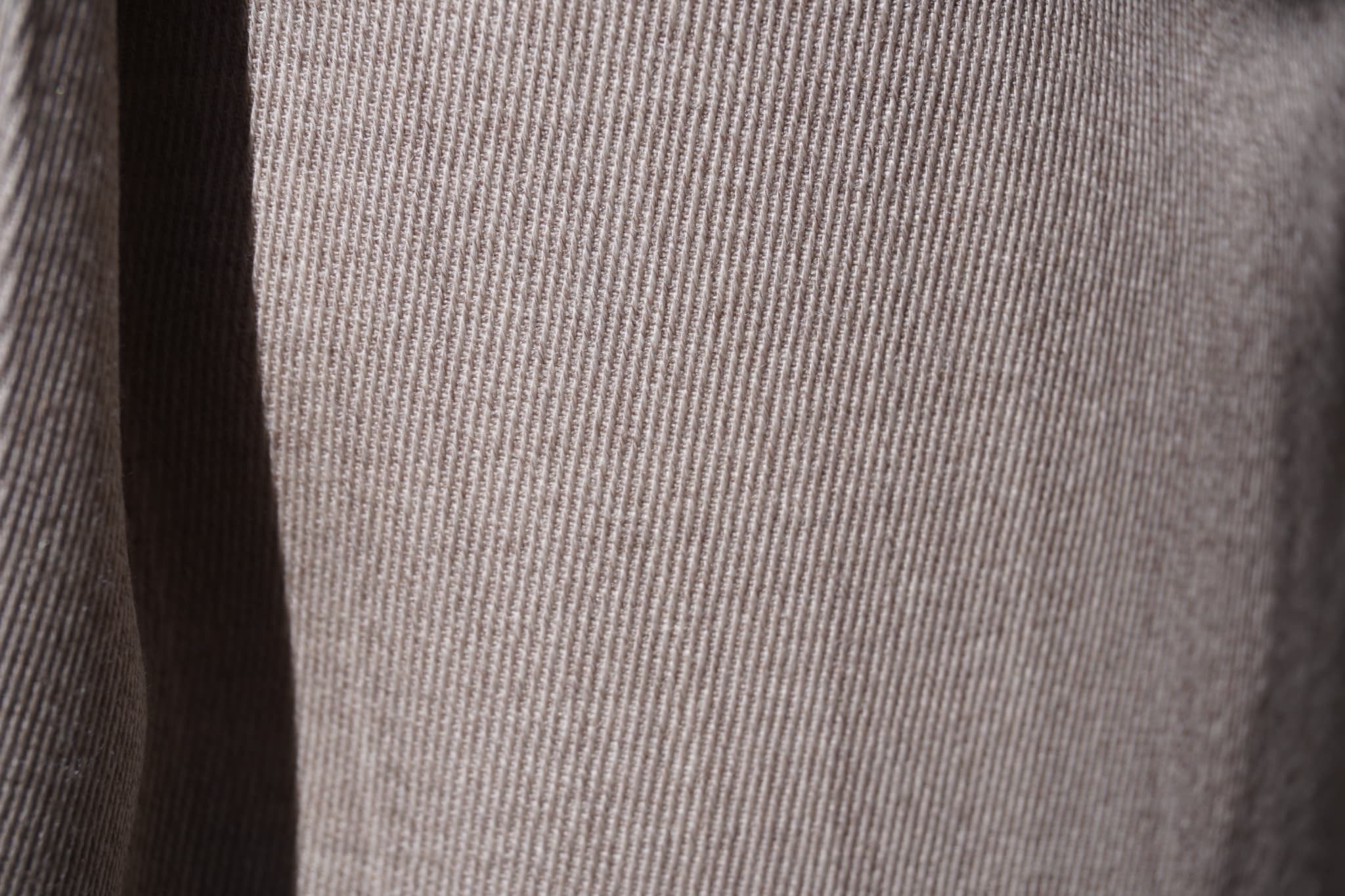 ビスコースは発色性が非常にいいことも特徴で、カーキともベージュとも言えないこの絶妙で美しい色合いも、また魅力の一つです。