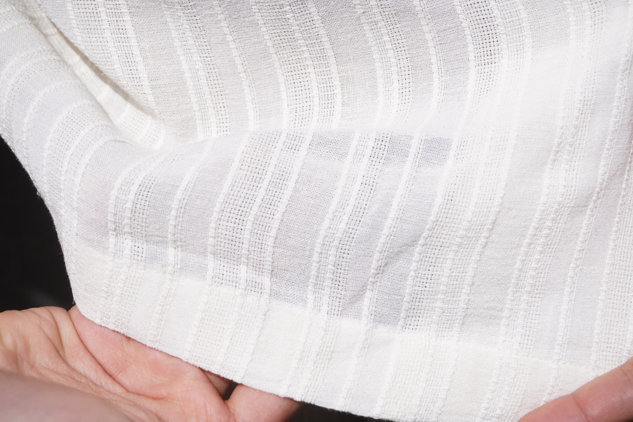 ほんのり透け感のある生地で、織りによるさりげない立体感と軽やかさが魅力です。