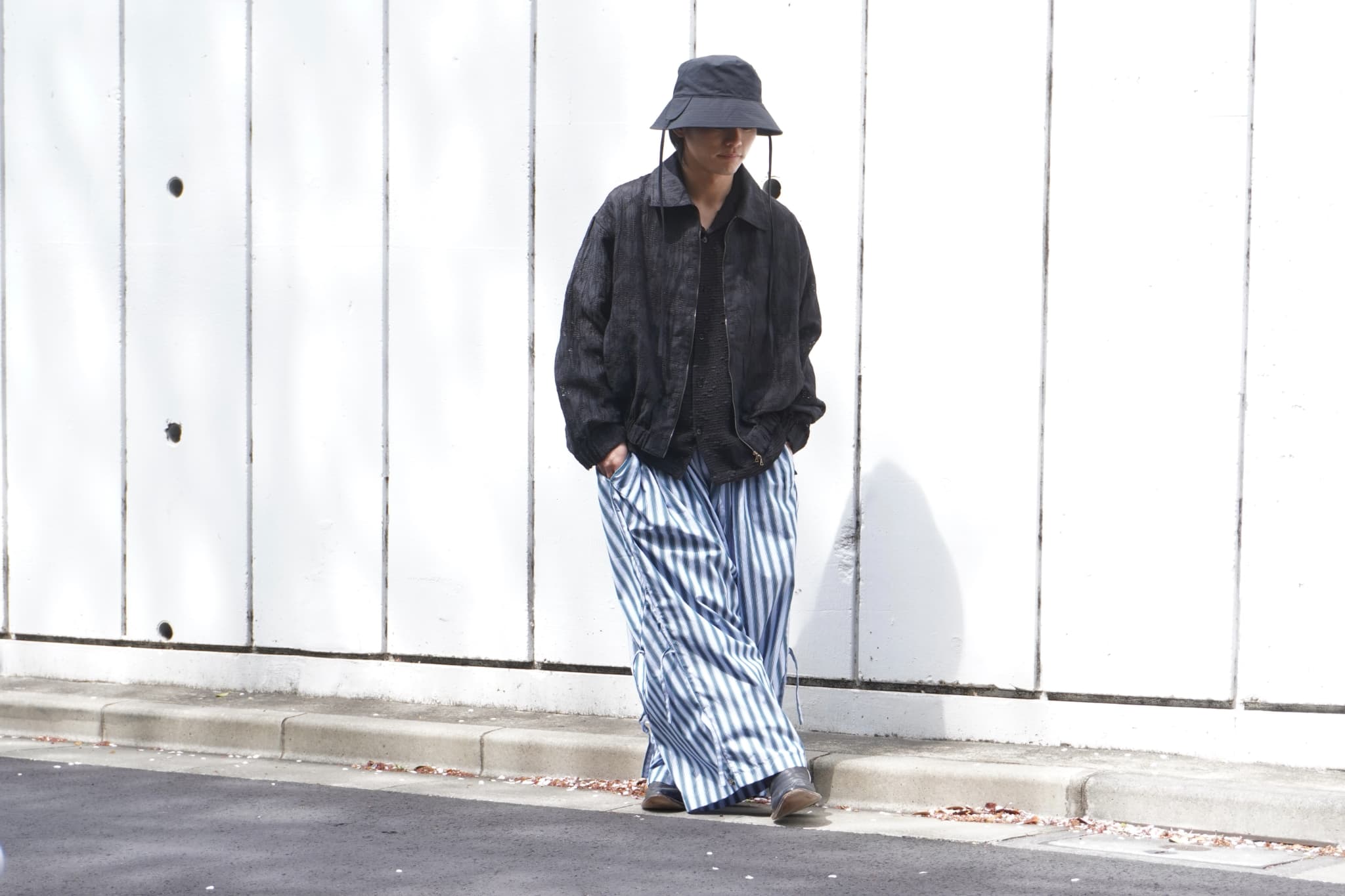 普段からカジュアルなスタイリングが多いので、自分らしくライトアウター感覚で前開きでフーディをレイヤードしスニーカー合わせています。