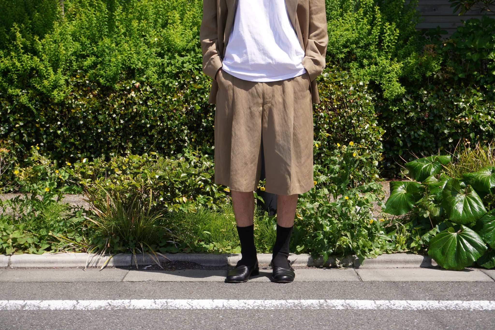 ワイドフィットのショートトラウザー。
