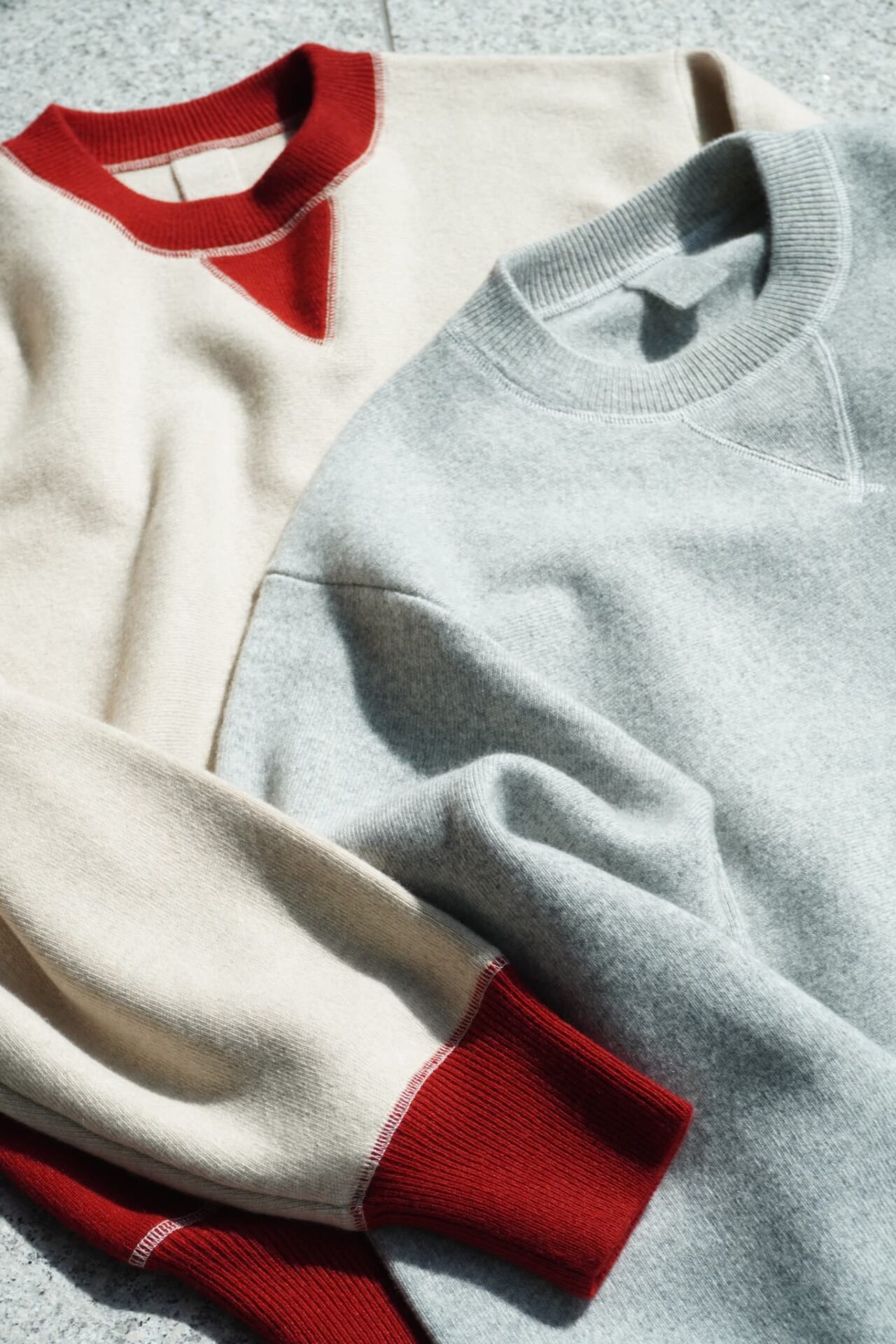 ヴィンテージのリバースウィーブのスウェットをベースに贅沢にピュアカシミアを使用した1着。古着のリバースウィーブと比べ、上品で全く違った面持ち。