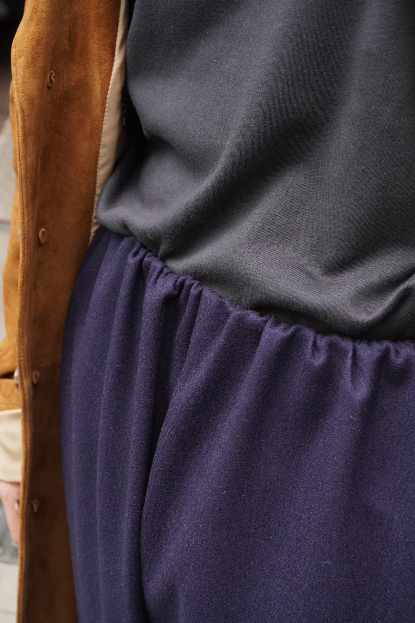 ただ太いと言いつつも、ウエストに2本の浅めなインタックを配し、ジャストなウエストからふくらみのある腰回り、そこから裾に流れる美しいラインが魅力的。