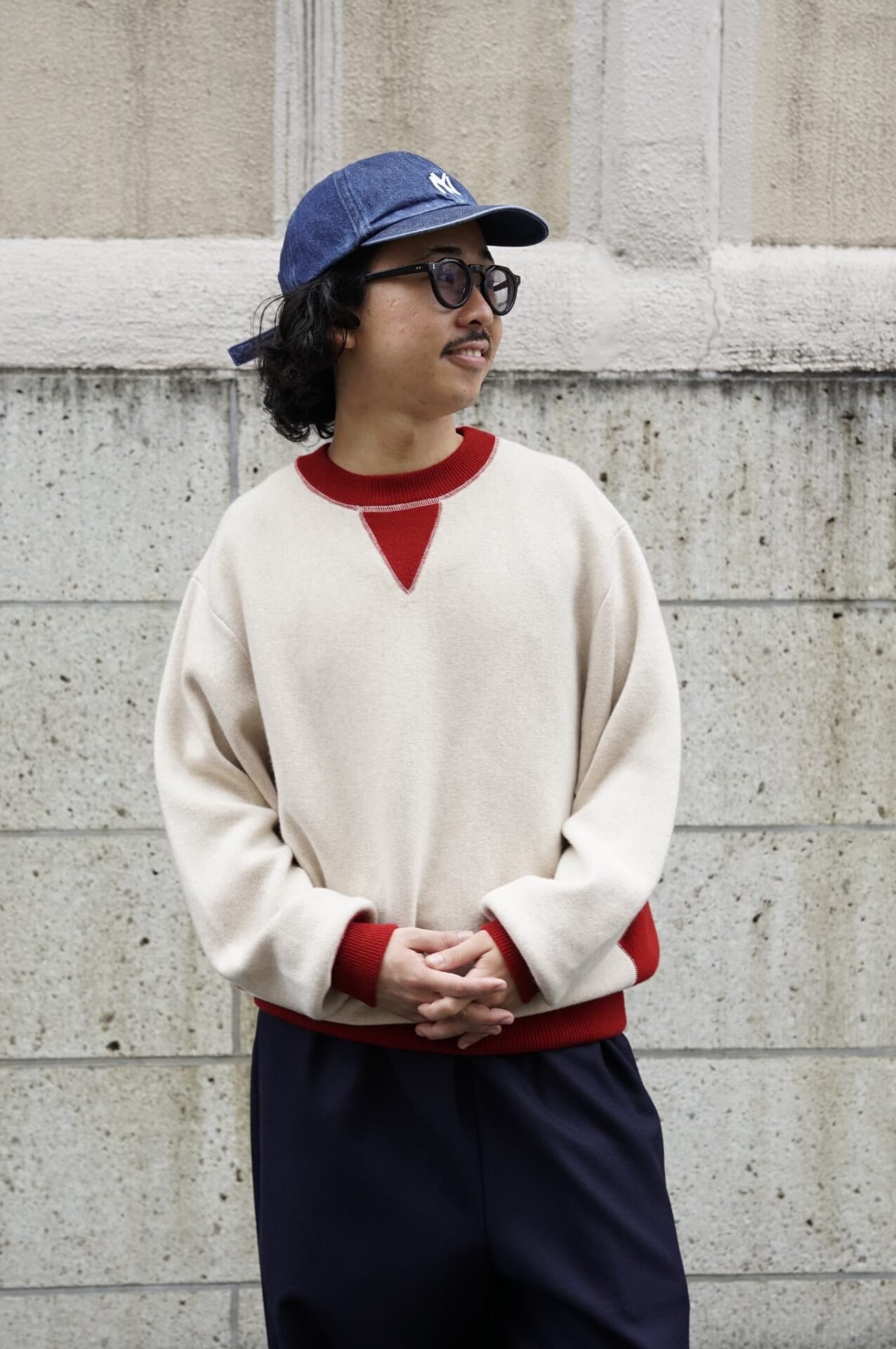 スウェット特有の3本ステッチもあえて違う色にし、デザインに落とし込んだりとブランドらしい遊び心を加えているのもポイントです。