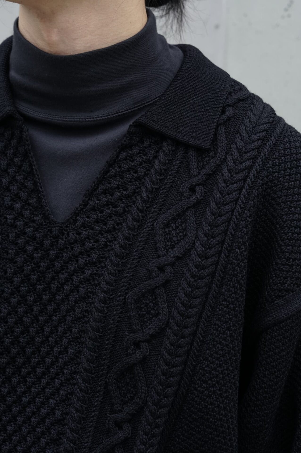 クラシックなケーブル柄の表情と透け感も高度な技術により繊細に編まれています。