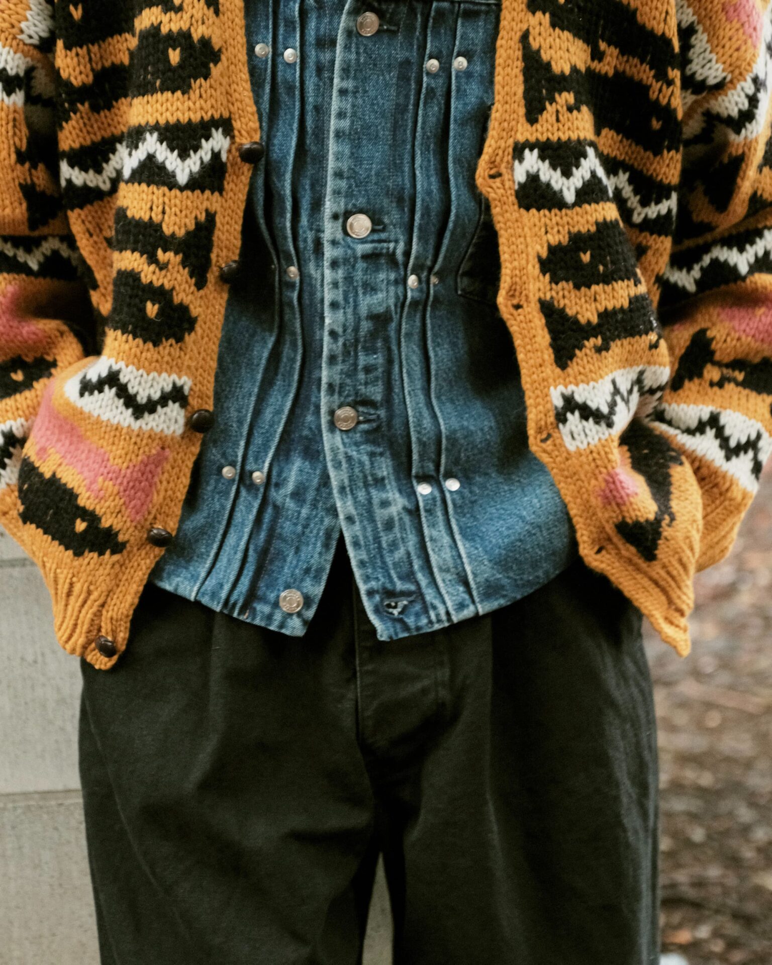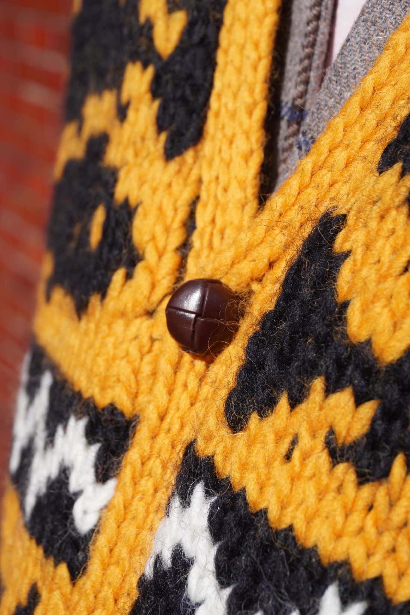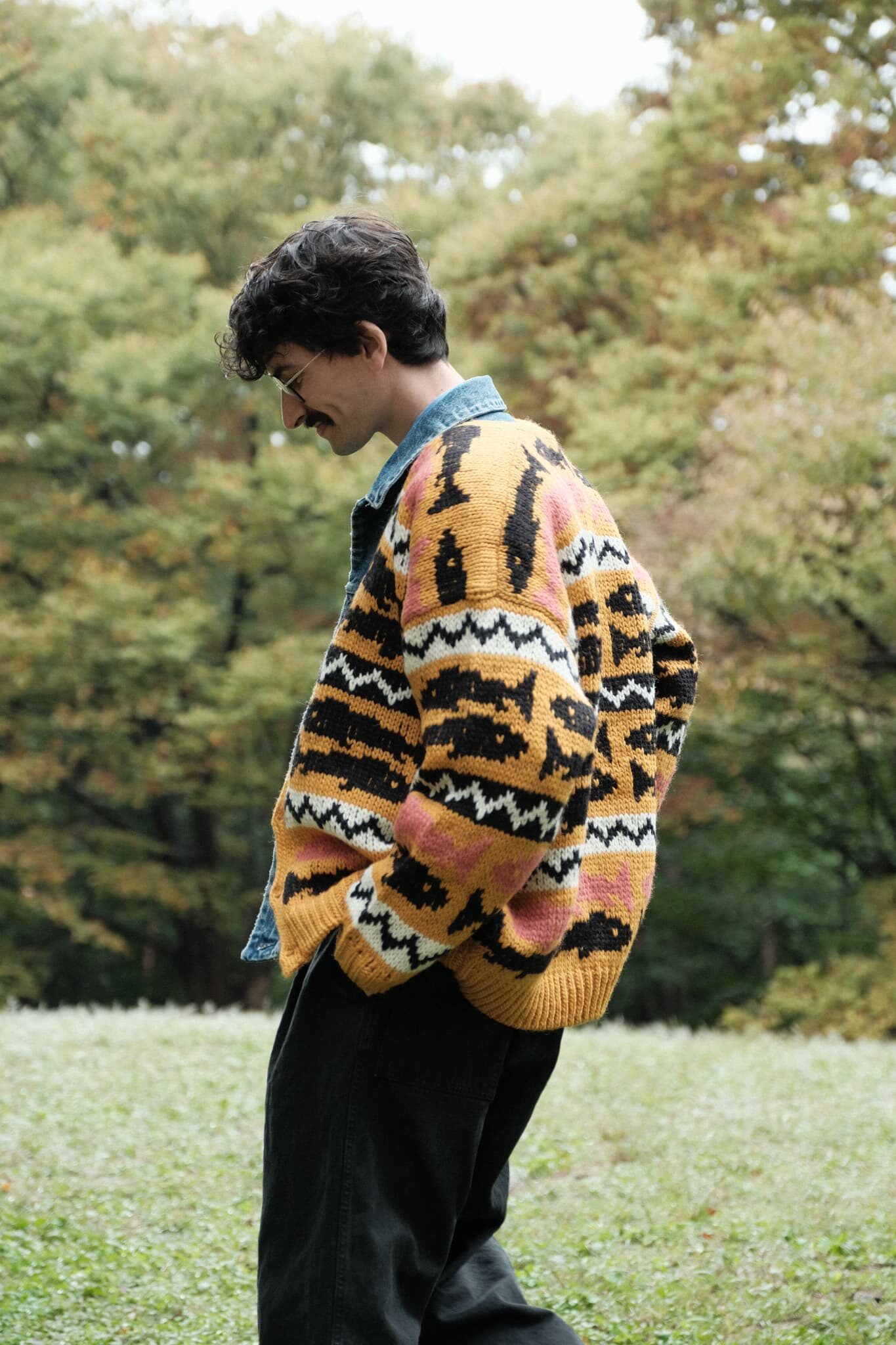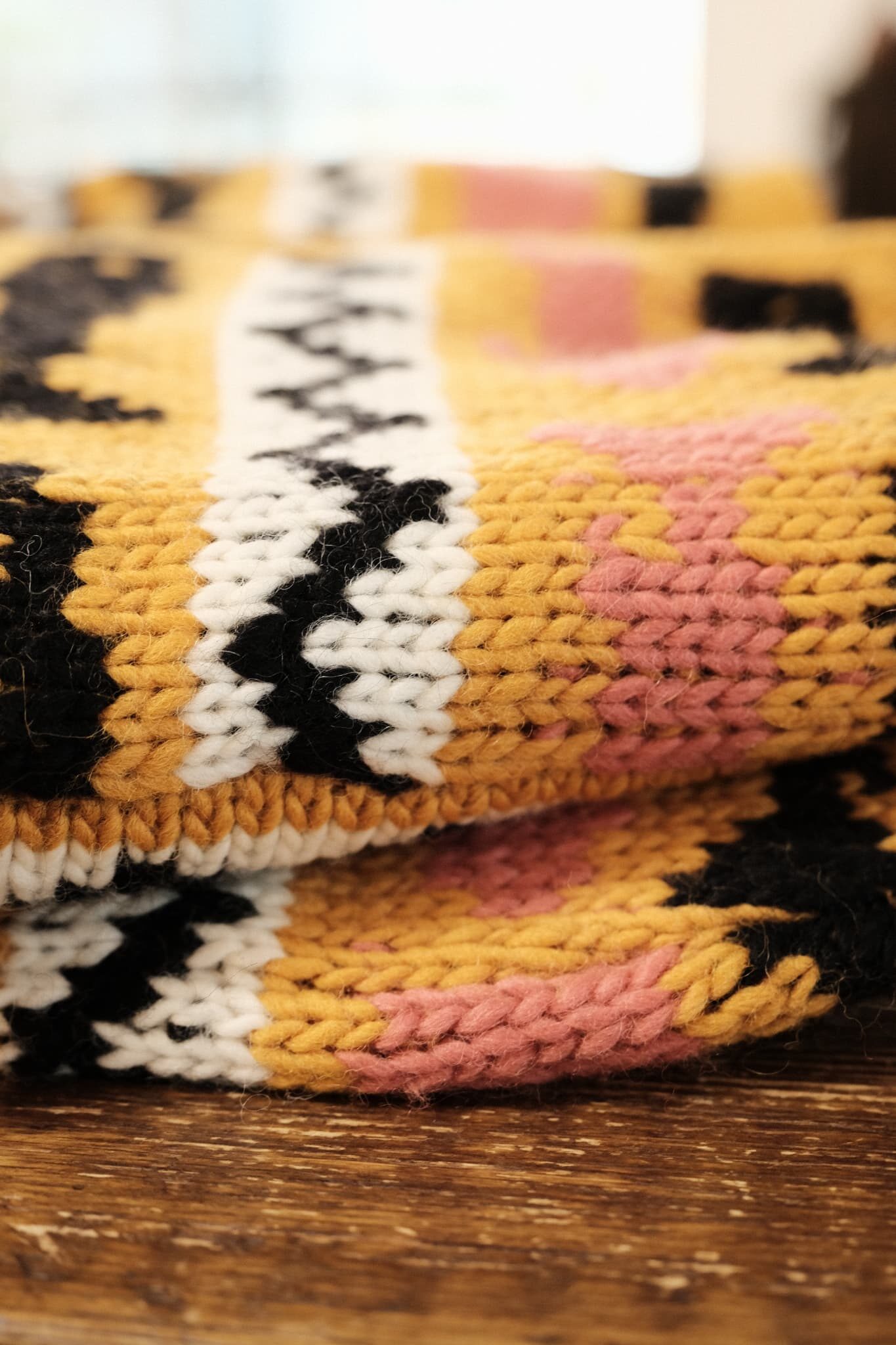 油抜きがされたようなガシガシウール×手編み、加えて鮮やかなカラーパターン、この手のニットが大好物で、きっと世界で一番似合うと勝手に思っている自分としては、絶対にバイイングしたいとチームのみんなに話したのを覚えています。