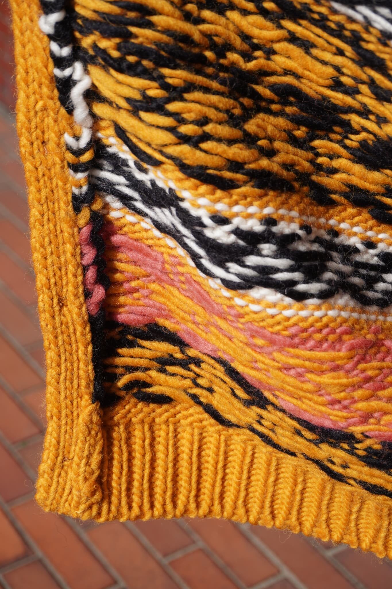 甘撚りローゲージのガシガシウールに攻めたカラーパターンとイラスト。