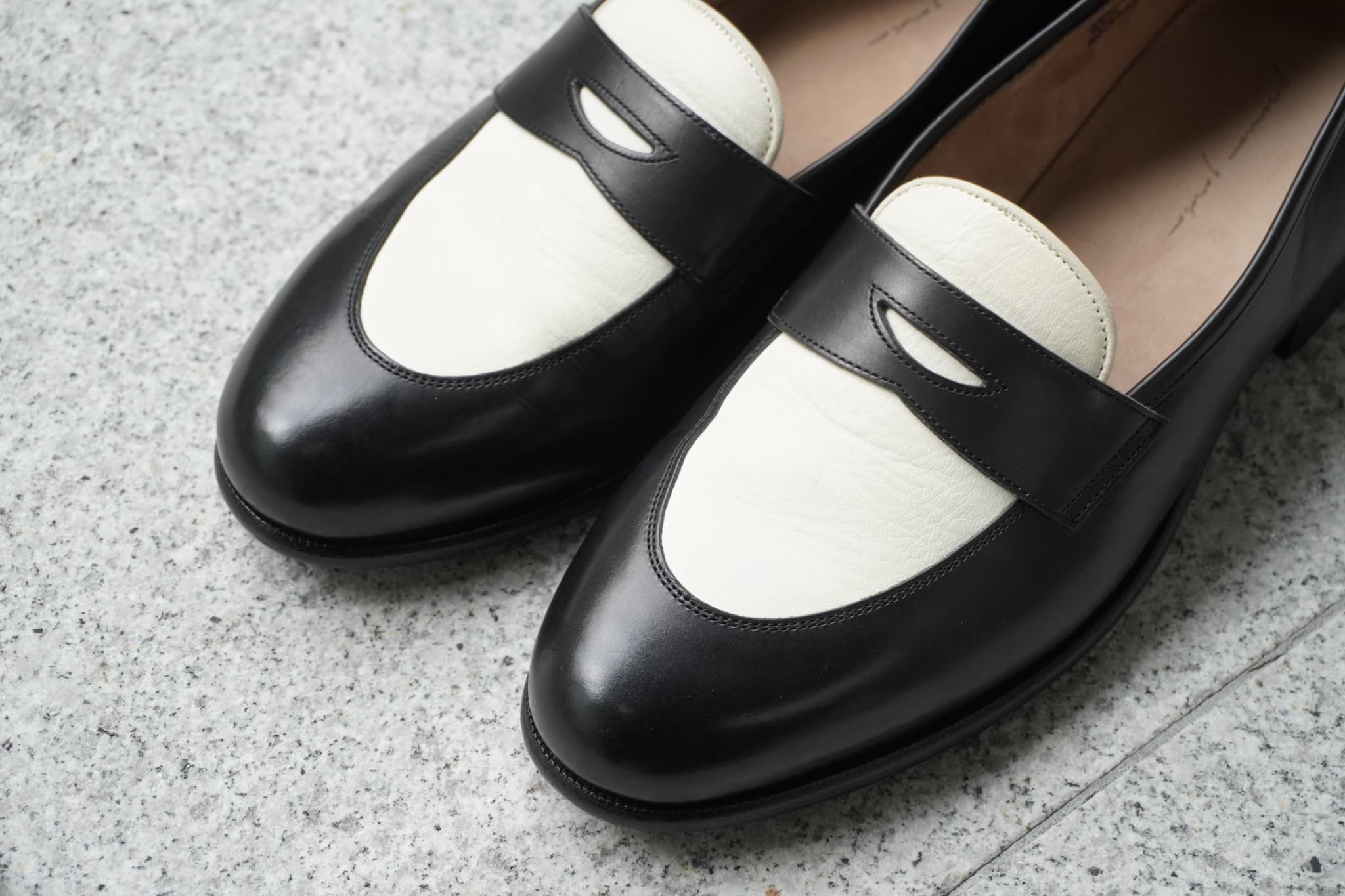 ローファーを作るにあたりモカの部分は大きくデザインを左右するきっと生命線のようなもので、“Sans”の中でも特にこのコンビカラーにこのディテールが効いてくる。