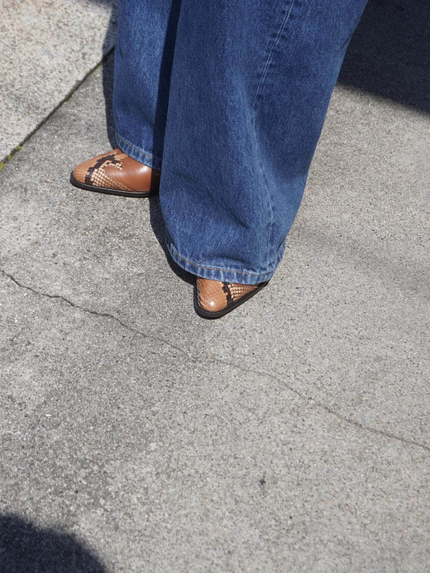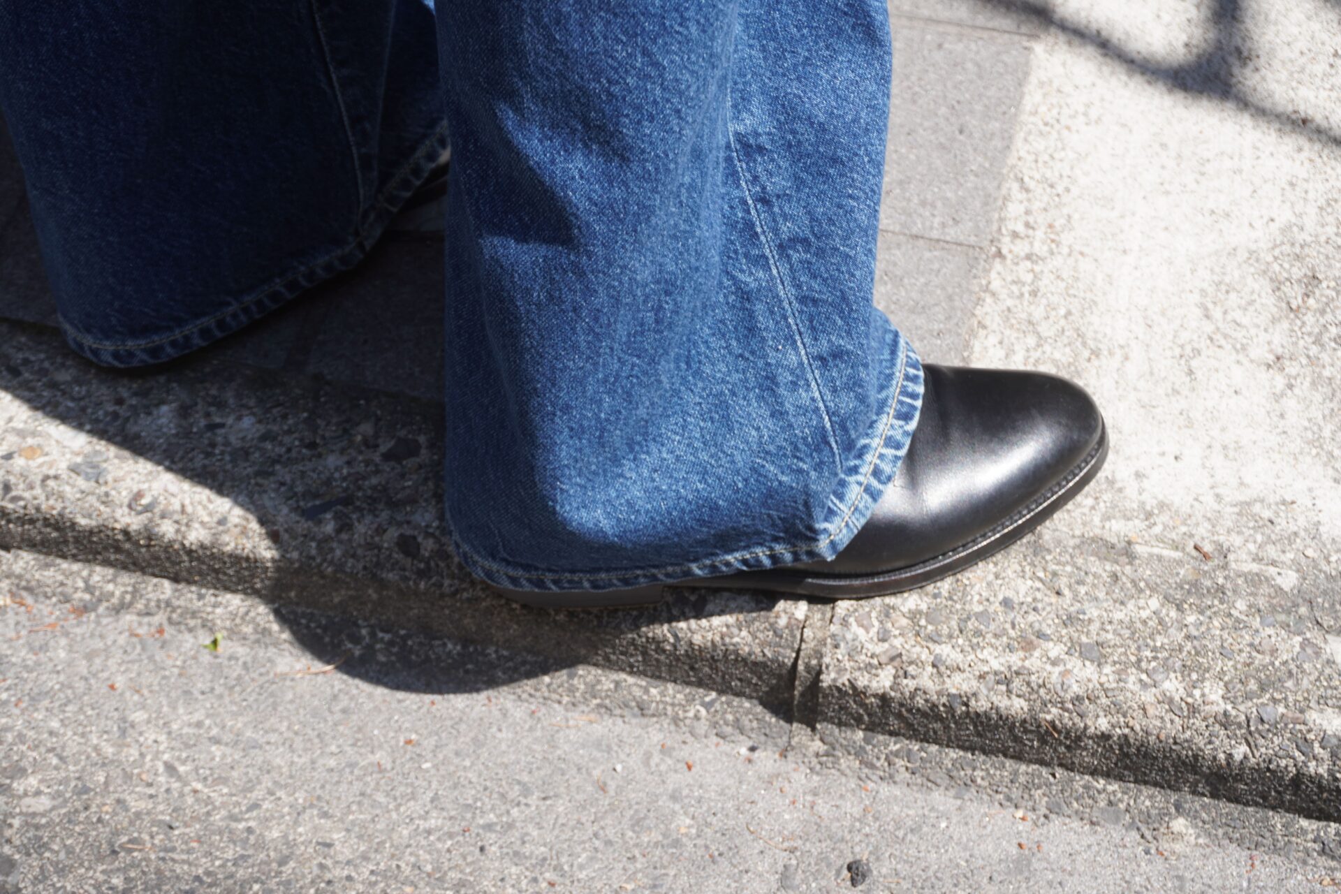 トゥが少し覗くか隠れてしまうくらい、トゥーマッチな感じで穿けたらと。