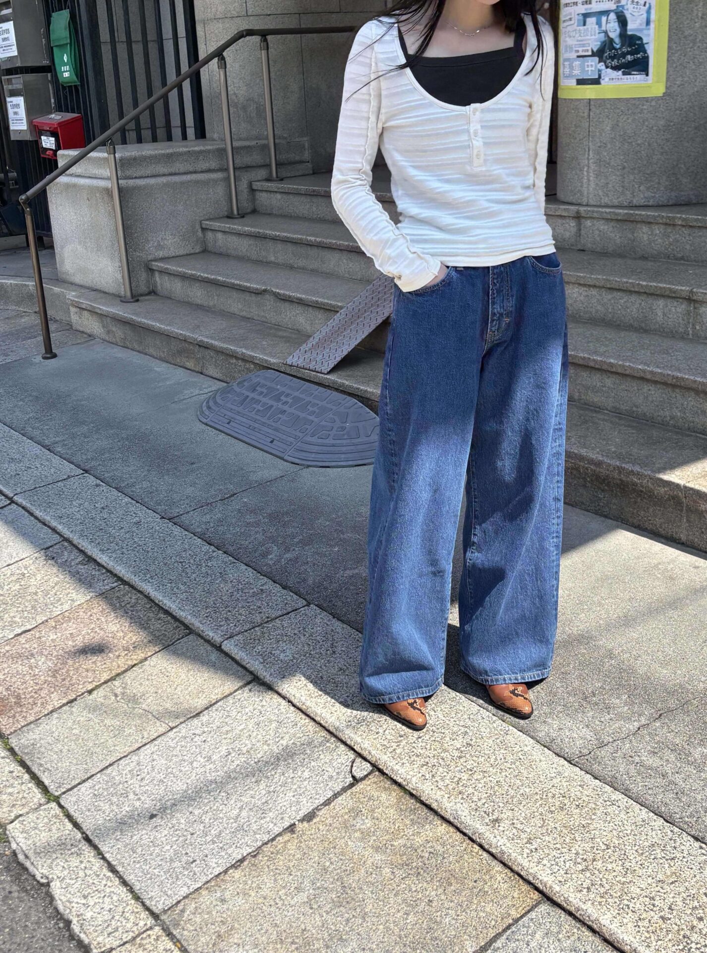 これはミッドライズのワイドフィット、ストレートレッグ。
