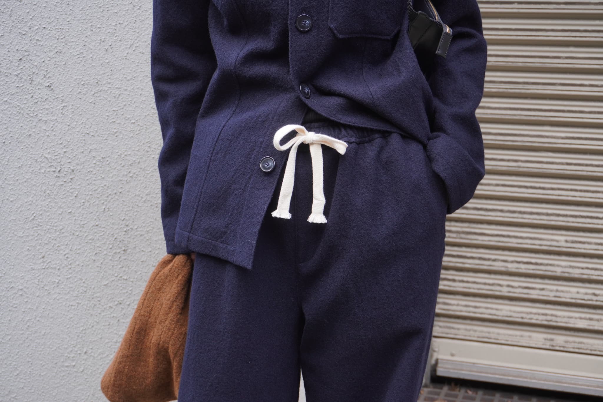 上下共にゆったりとしたシルエットですが、それぞれリブのテンションは強めで、細かいフィッティングにこだわったメリハリのあるセットアップです。
