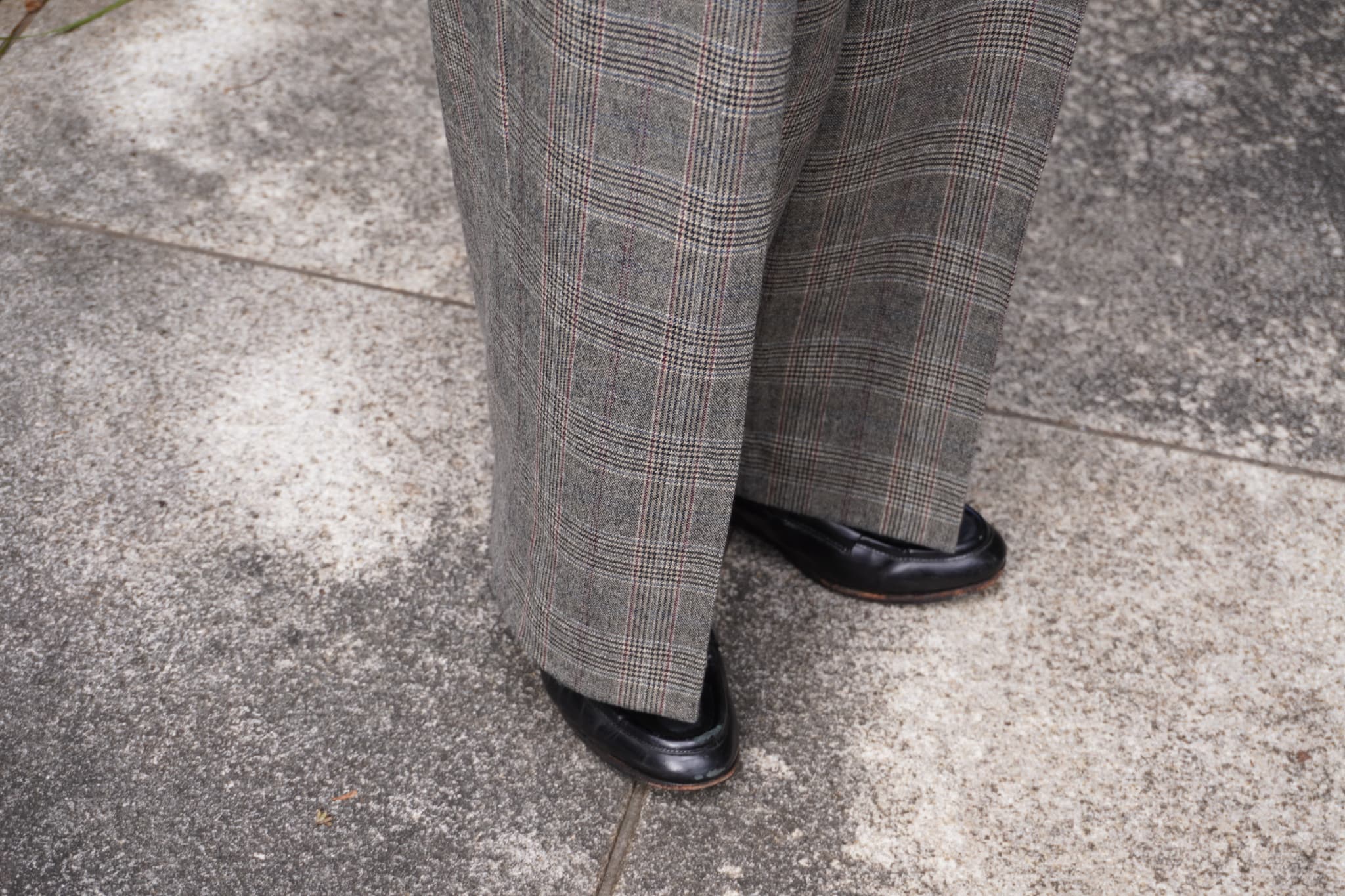 細身なジャケットとワイド目なパンツのバランスが可愛いセットアップです。