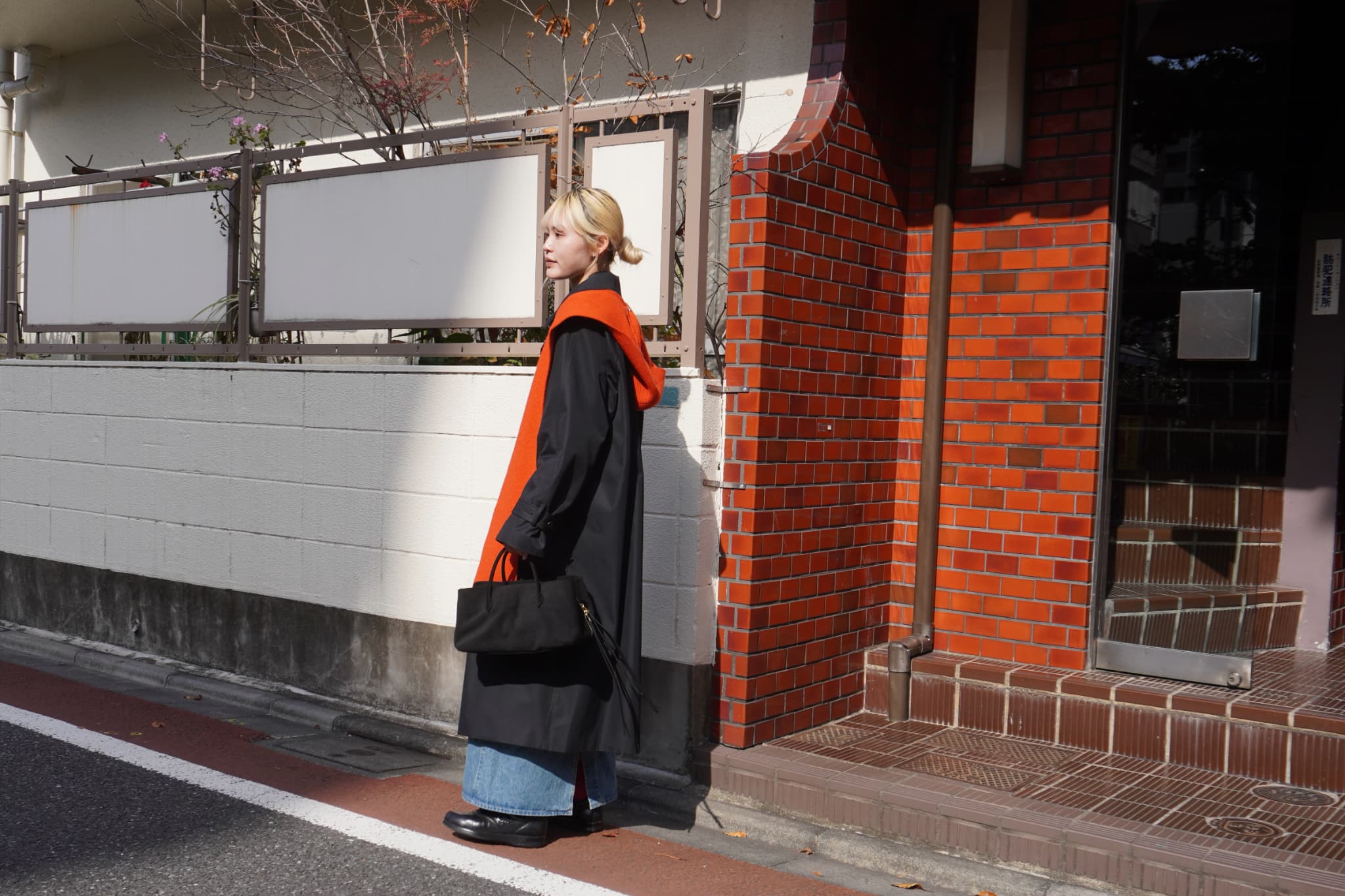 私は大好きな定番のMY BASIC TRENCH COATをメインにスタイリング。