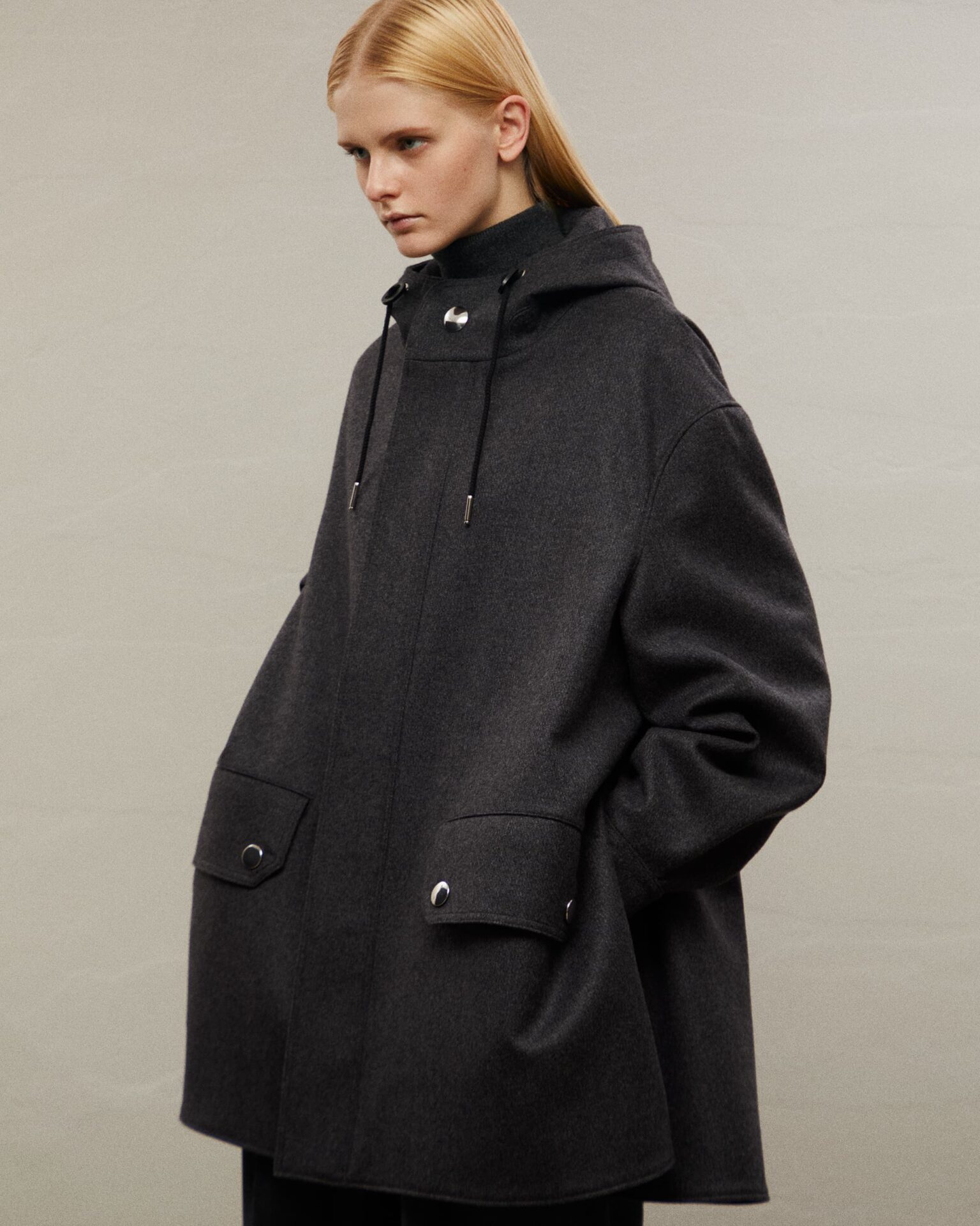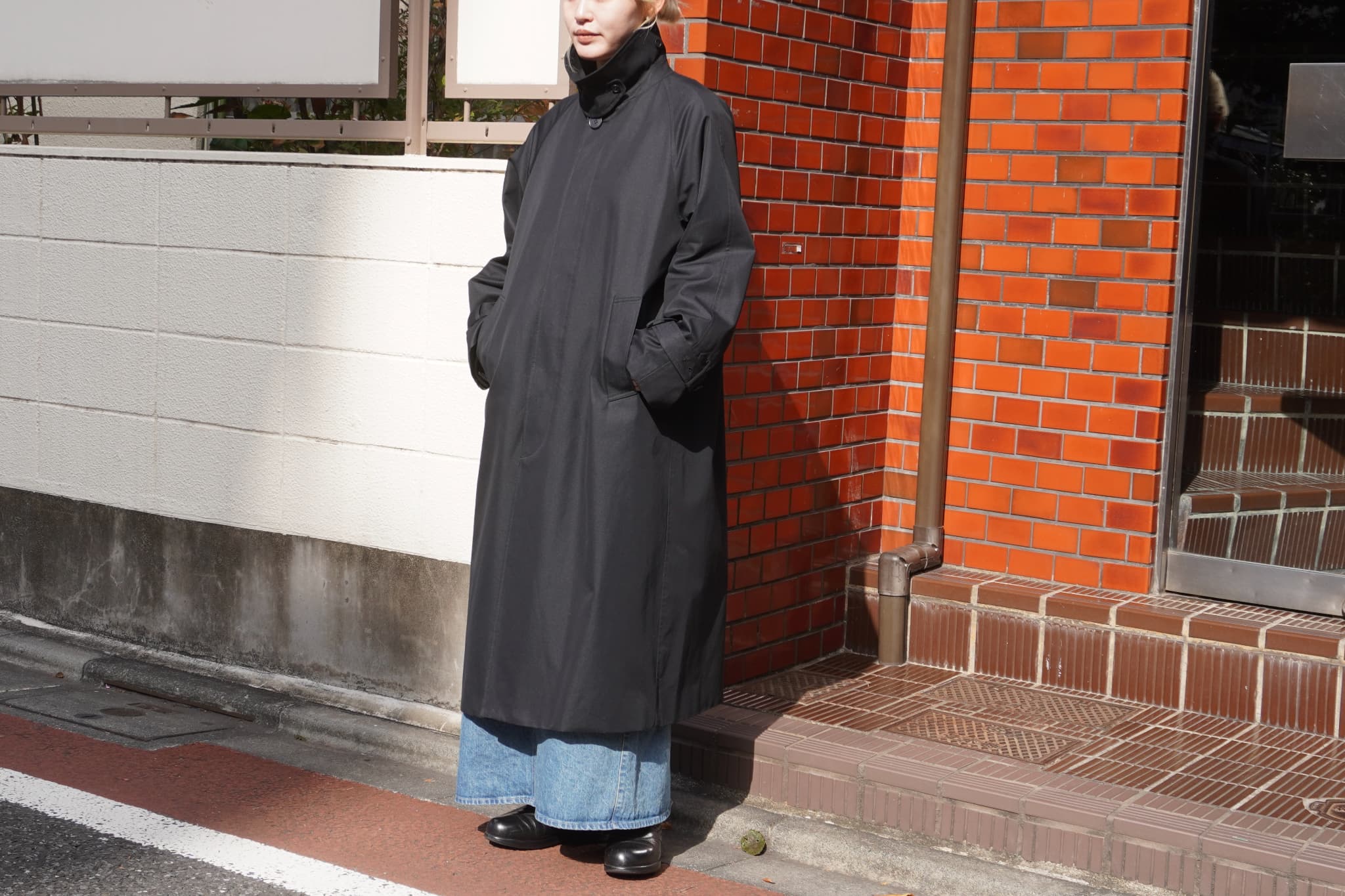 程よく光沢感の出るコットンで、静かな上品さがあるMYの定番のオーバーサイズのコート。