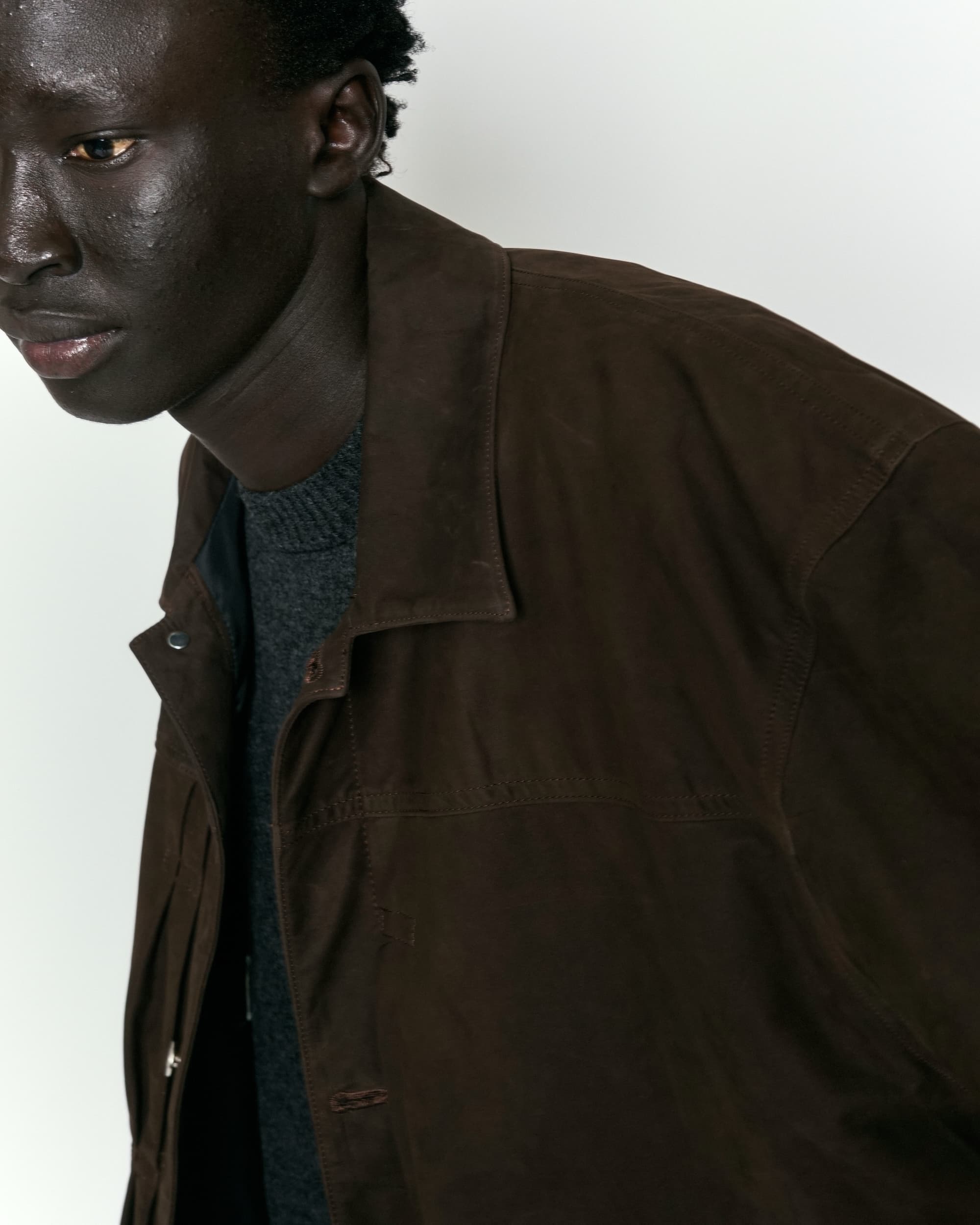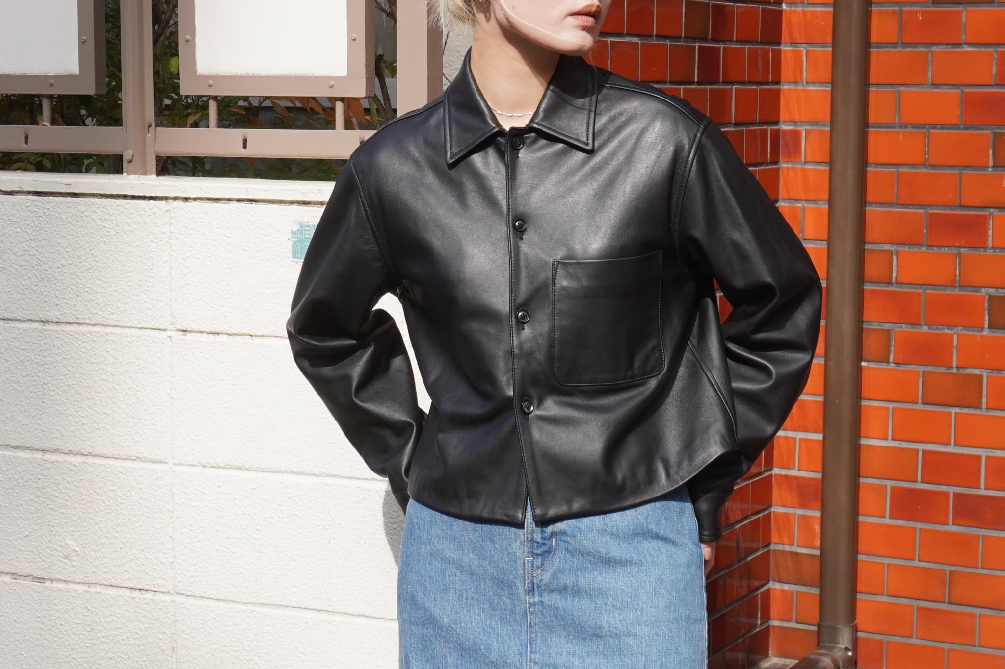 レザーに抵抗がある方も、MY___らしいカジュアルさがプラスされたこのシャツジャケットだったら着やすいと思います。ぜひ袖を通してみてください。