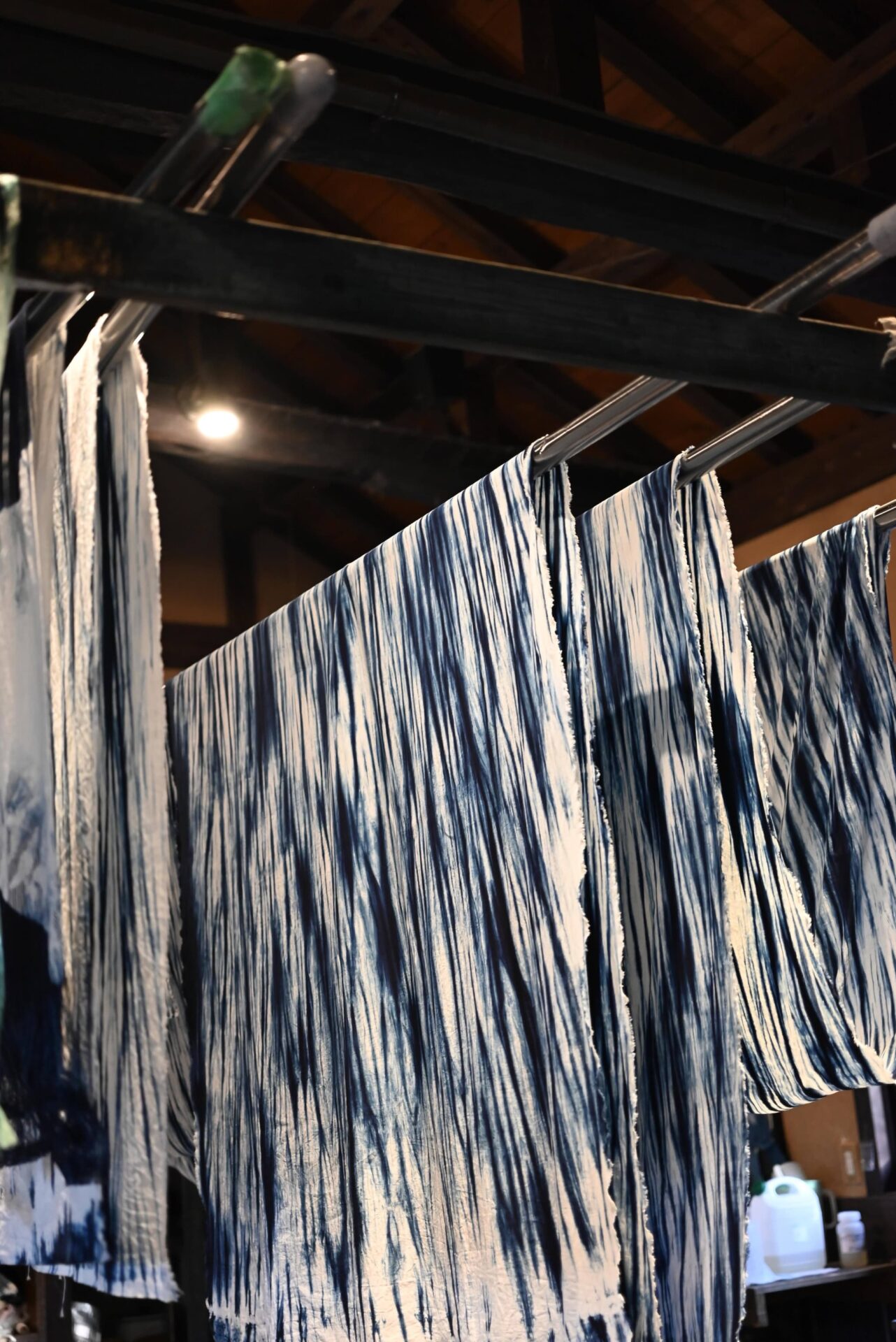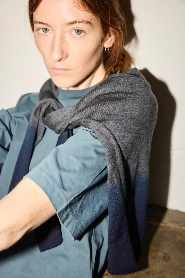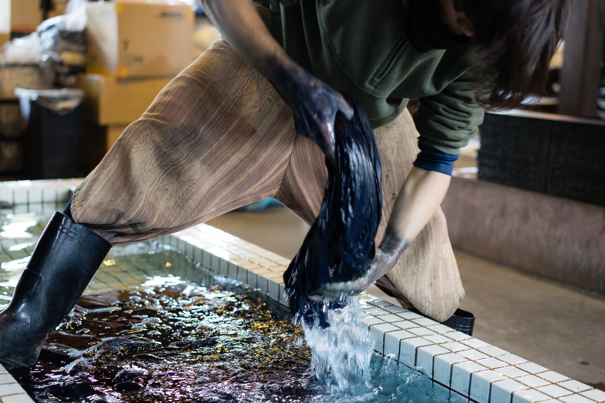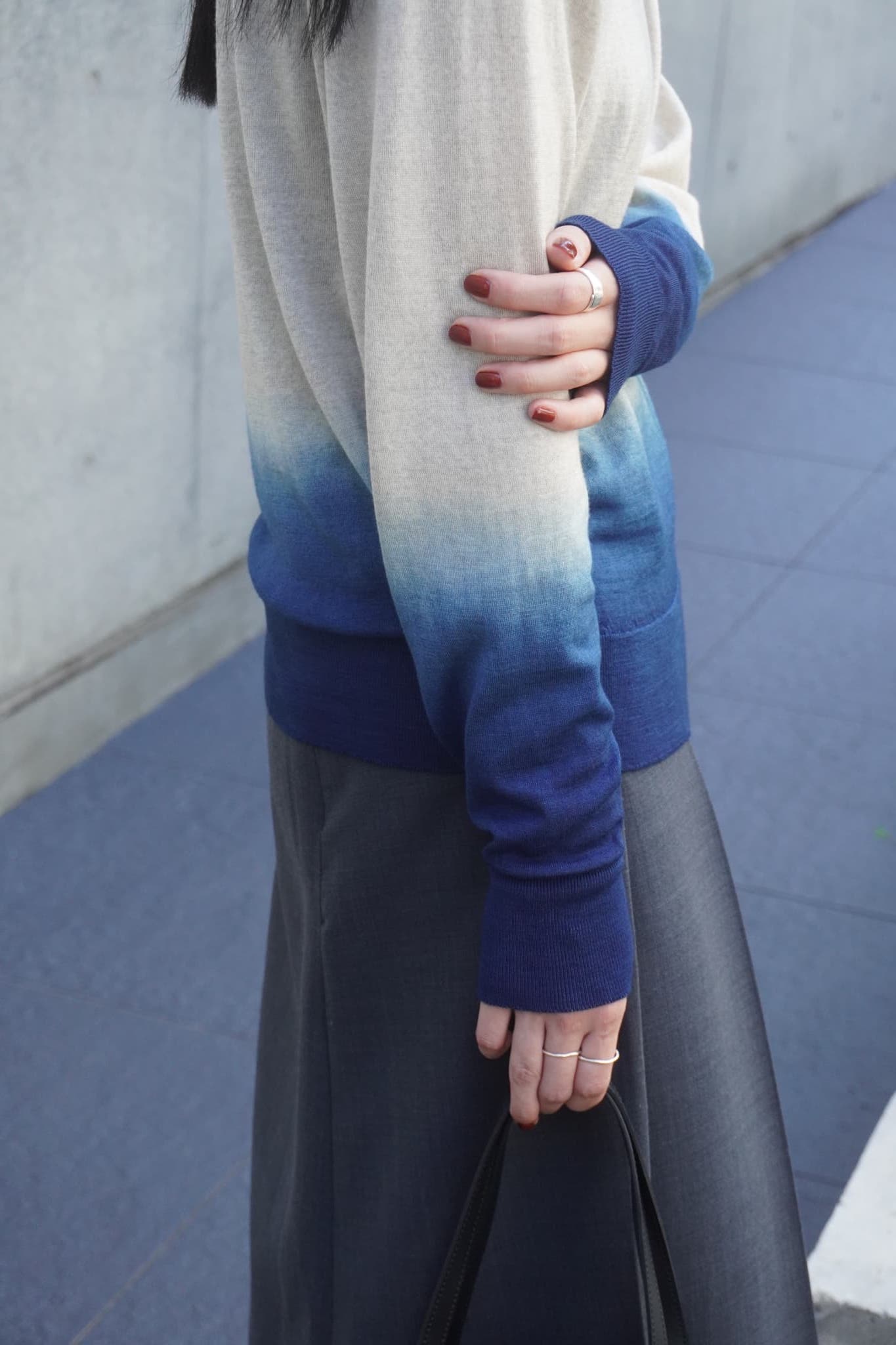 この工程によりアイテム全体を見た時、生地の色味のグラデーションが完成します。