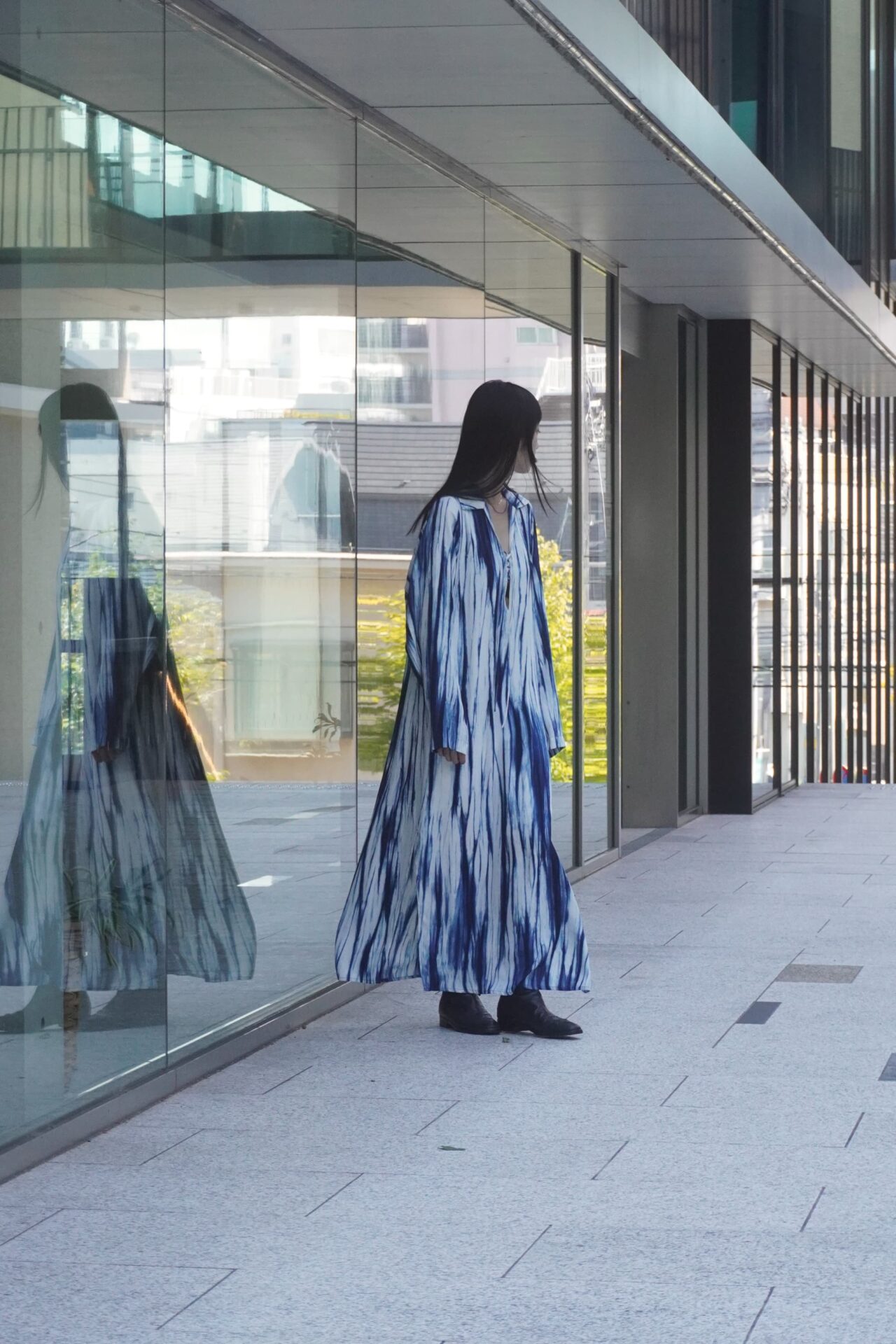 長さは六分丈くらい。お好みで腰の位置で調整し、雰囲気を変えていただければと思います。