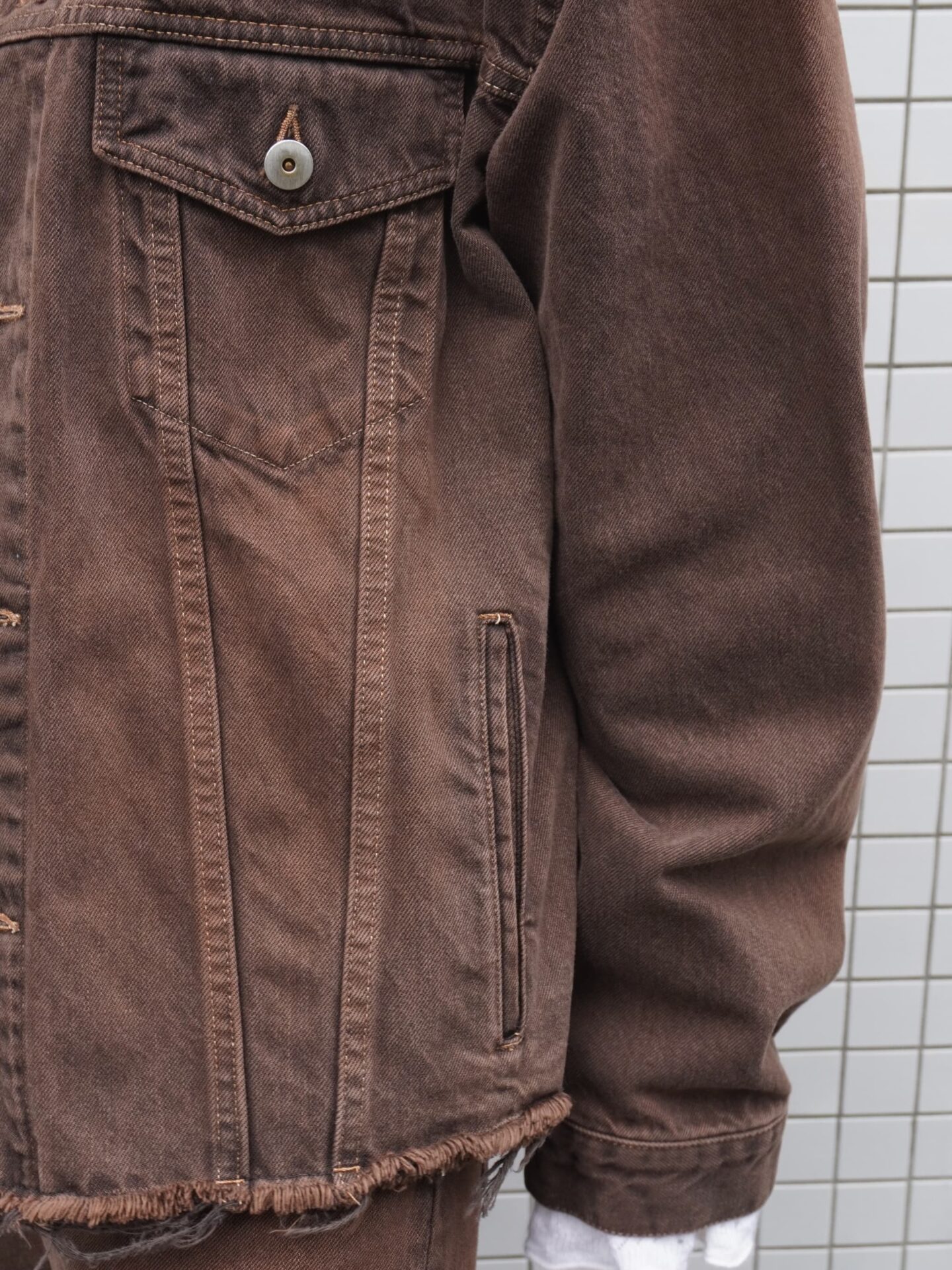 塩素を染み込ませたペーパーで擦り、通常の洗いではコントロールの出来ない色落ちが生み出されていました。