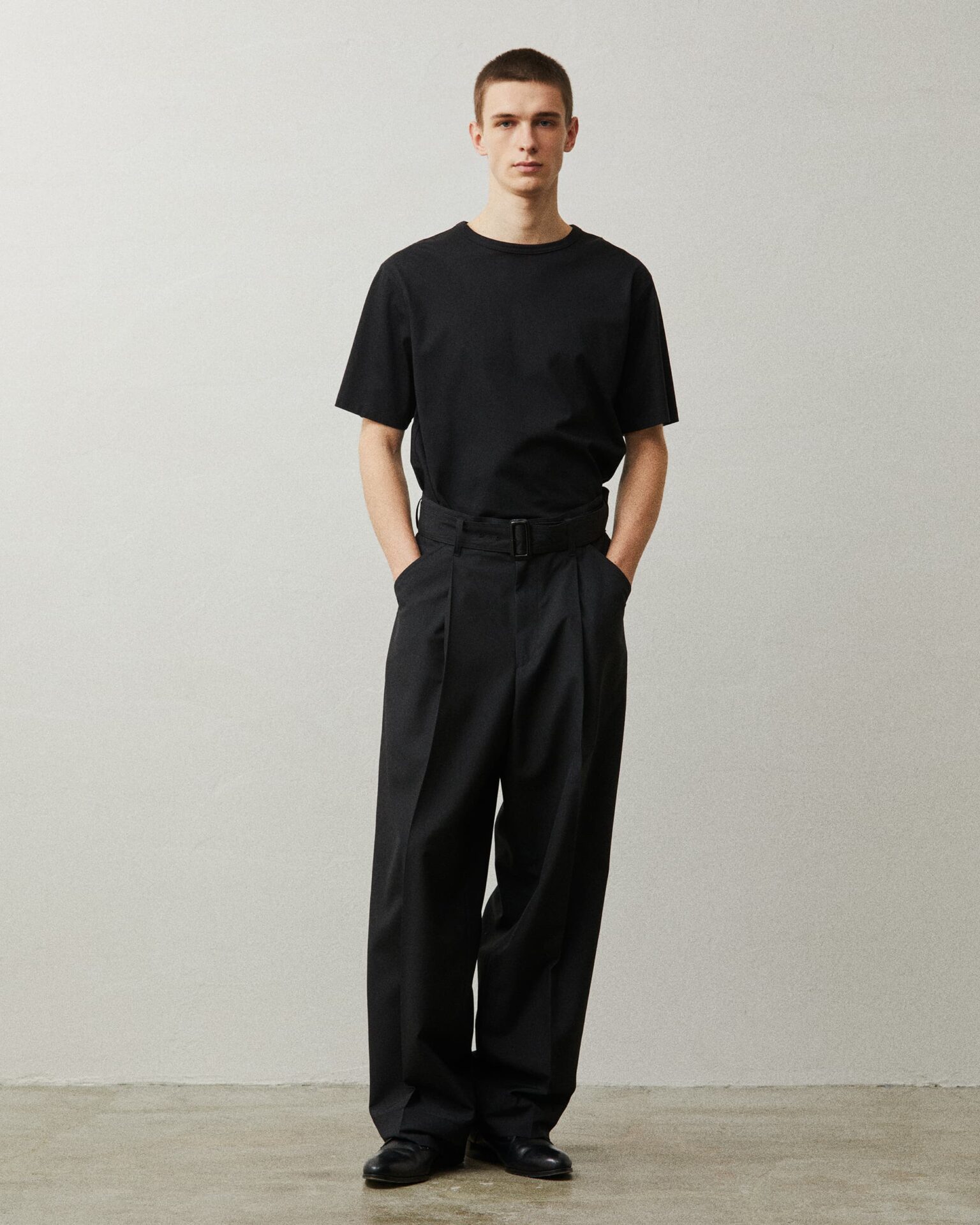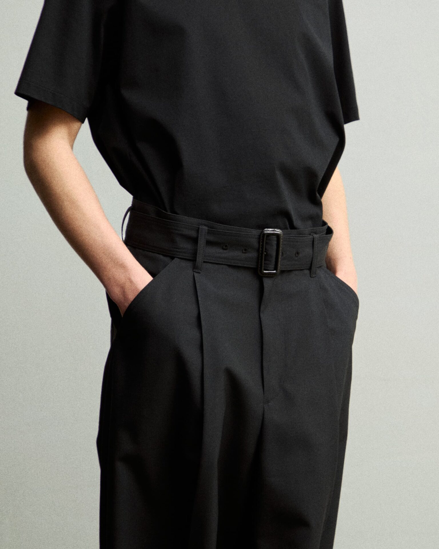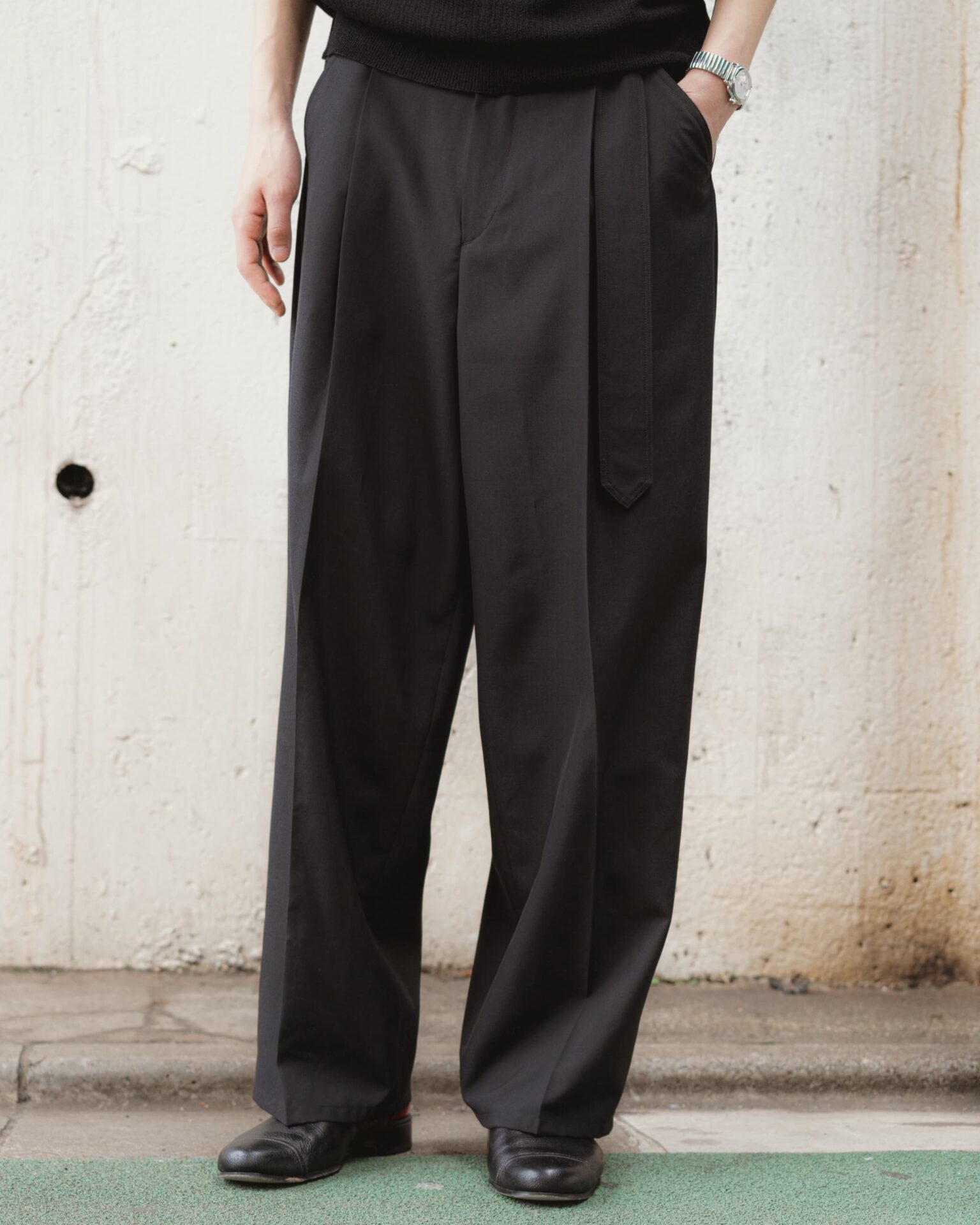定番のワイドスタイルに、同素材のベルトを組み合わせて現代的なテイストにアップデートしたデザイン。