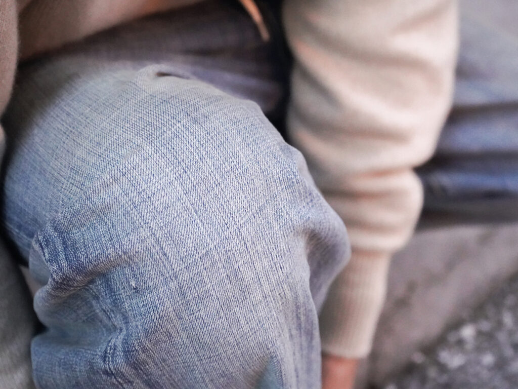 膝周りにポツポツと”シミ痕”のようなものが見受けられて、他の洋服であれば間違いなくショックを受けるところも、このデニムパンツに関してはむしろそれが良い。とさえ思えてしまう。