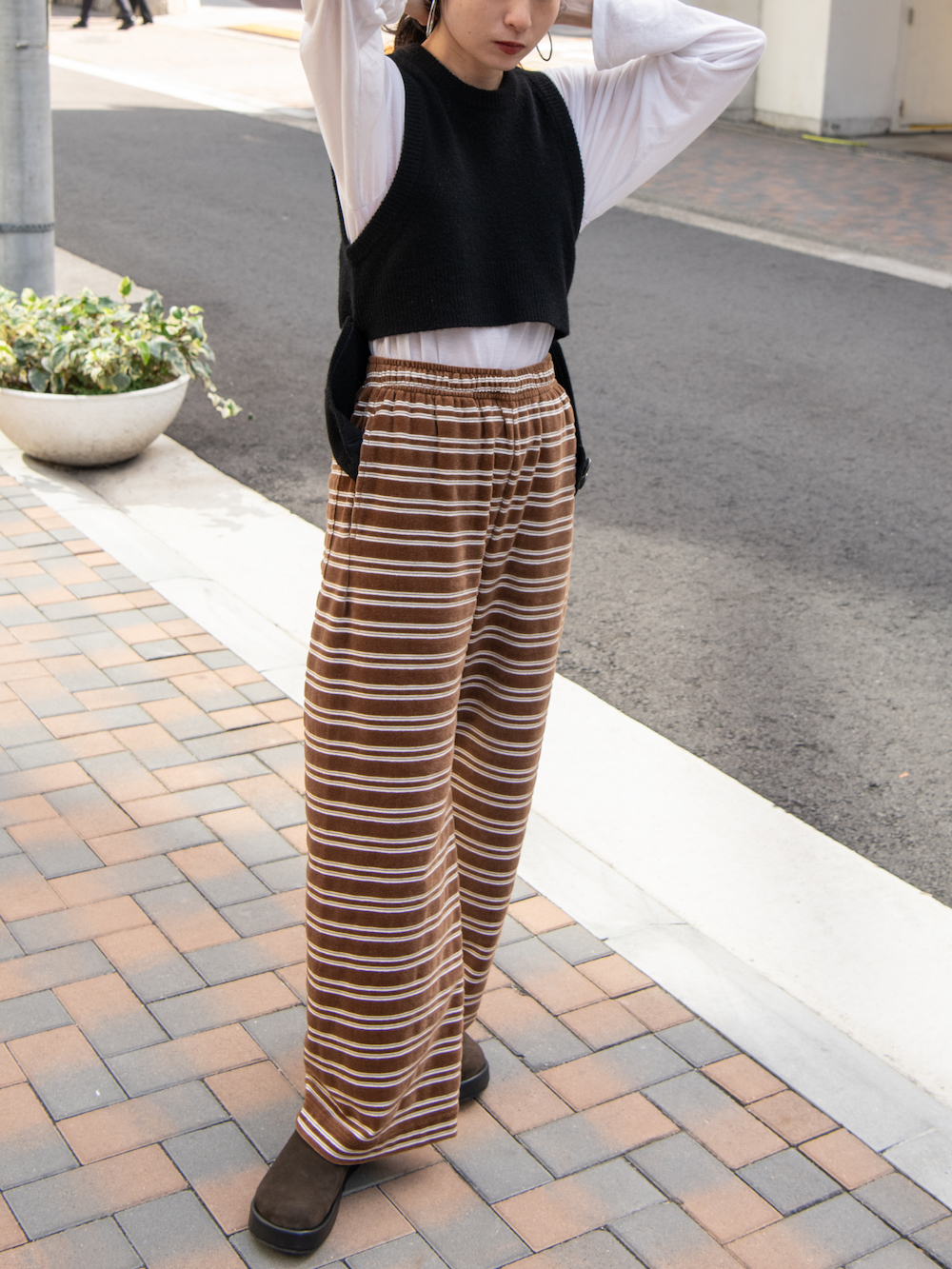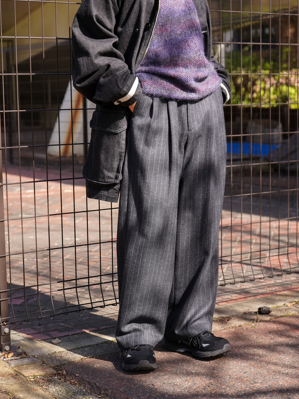 しつこいくらいに言いますが、スラックスは穿きたい。だけれど堅すぎず、ポップで愛嬌があるようなスタイルにしたい。そんな時にこれです。