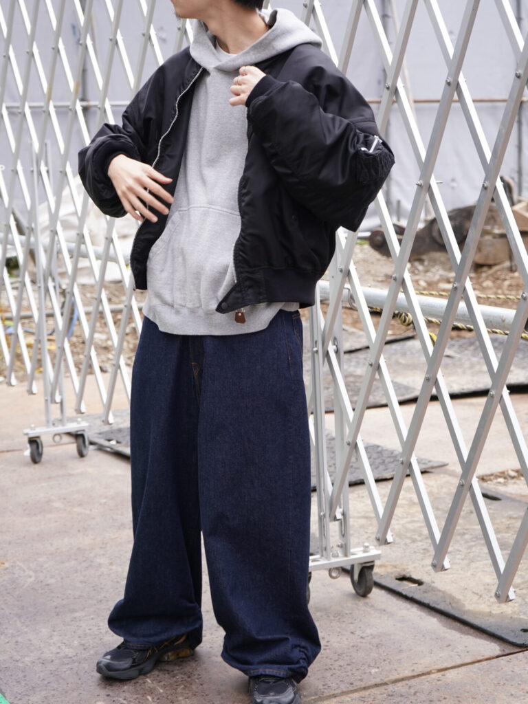 当たり前ですが、ウォッシュと比べるとハリ感があって穿き潰していく過程でもワクワクを味わえそうです。濃い目のインディゴはスタイルの引き締め役として活用するのがベターだと思います。