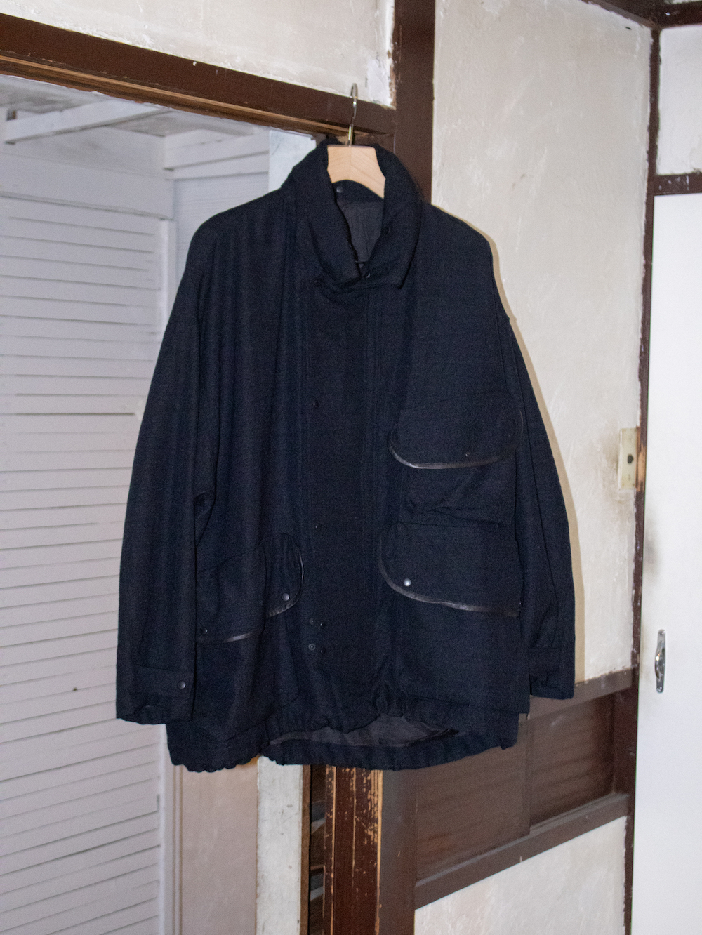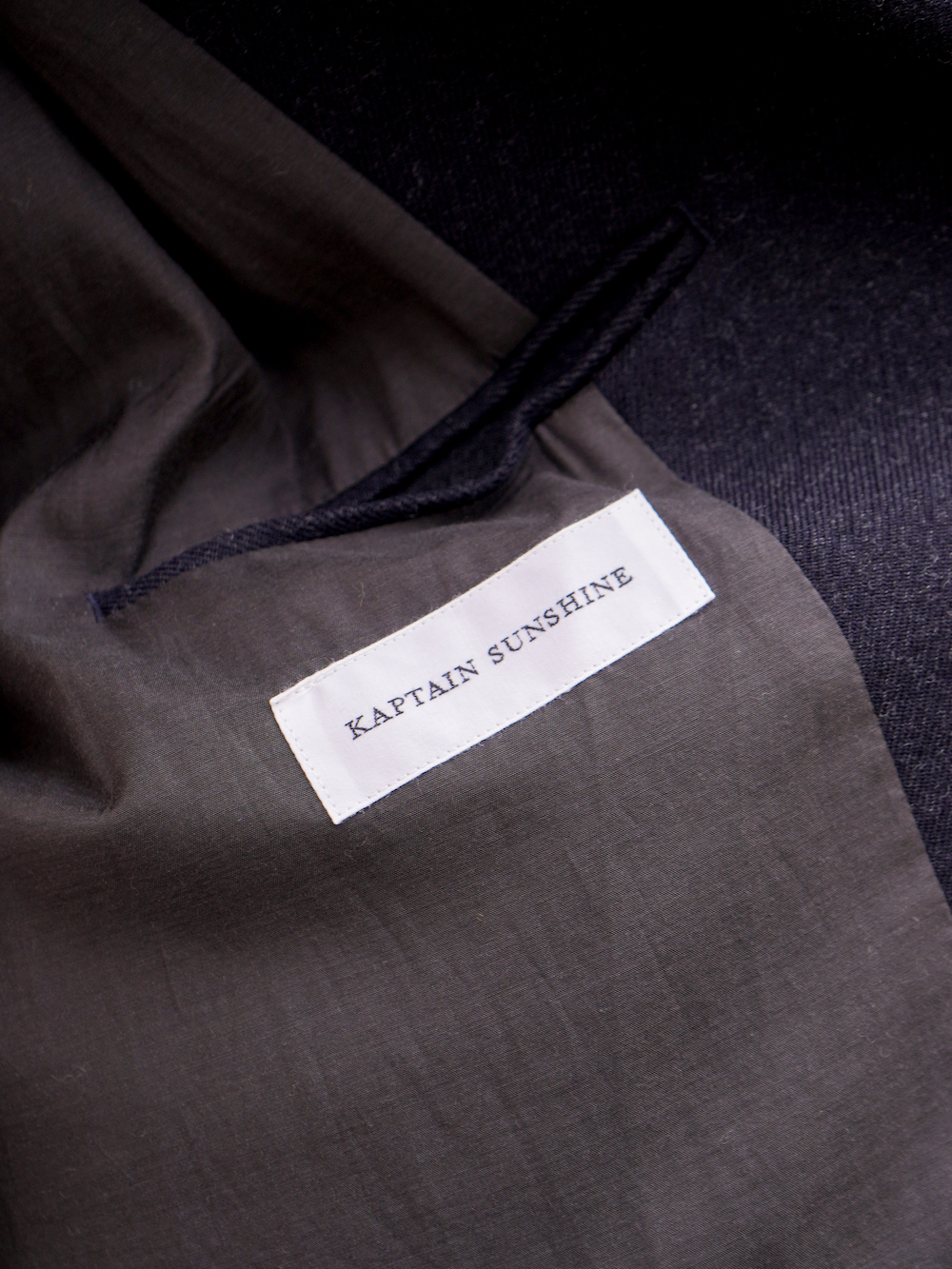 総裏仕立てで、襟裏、チンタブ裏、フラップ裏はウール地の切り替えになっています。