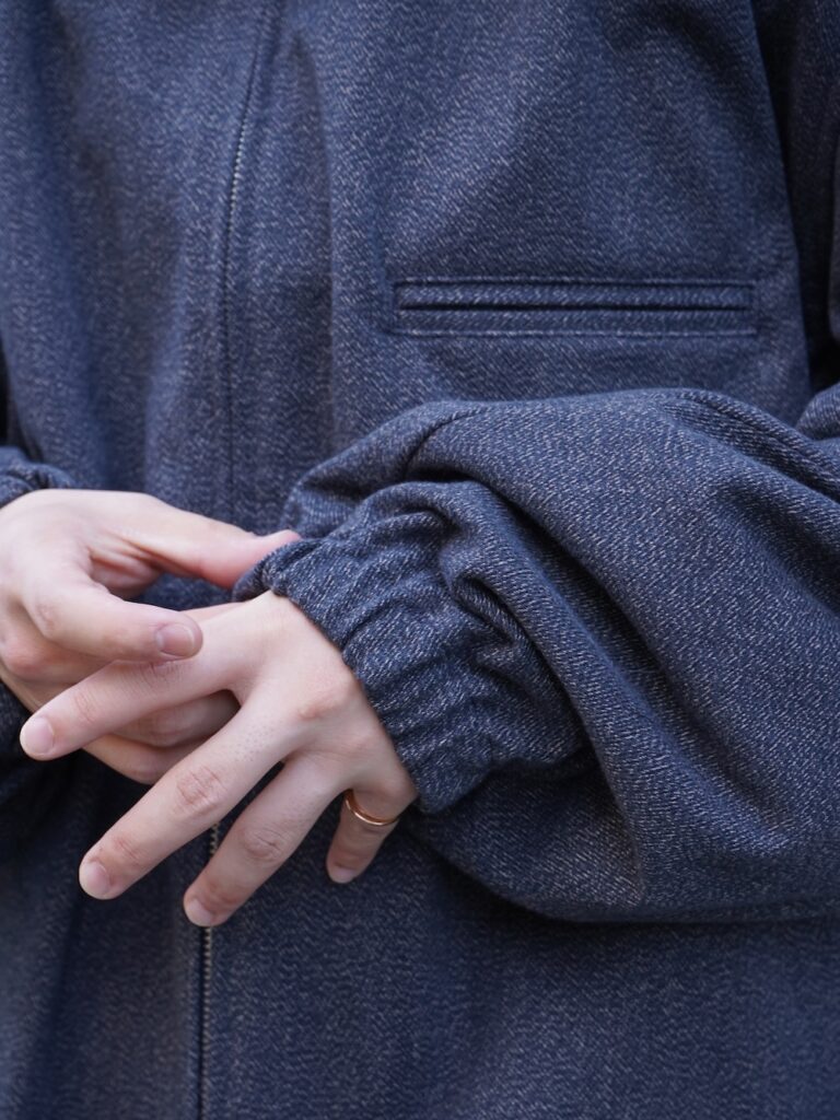 同じ形の濃いインディゴは、お気に入りのブルゾンに袖を通して。