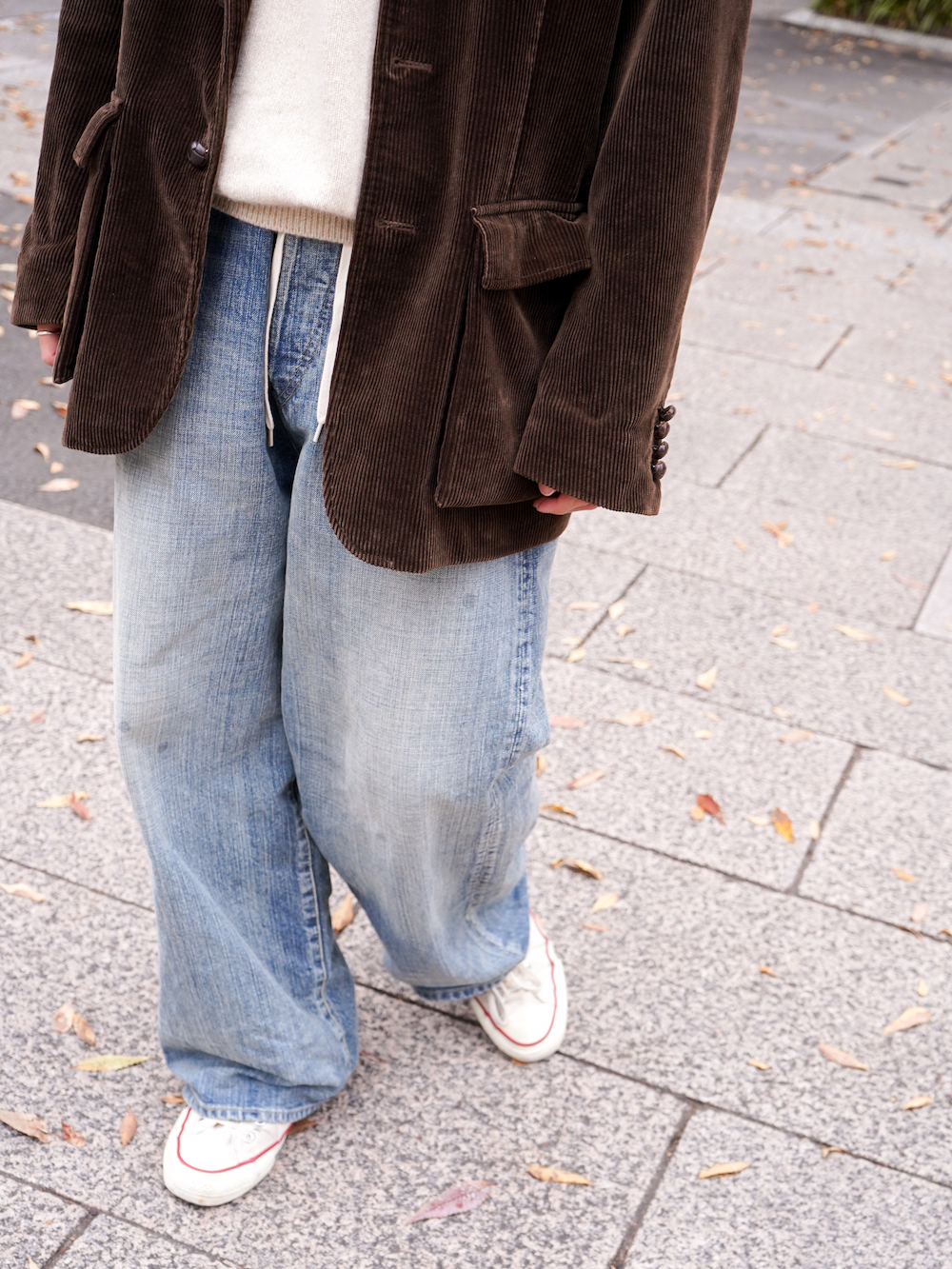 こんなにだぼだぼなパンツは久しぶりに穿きましたが、最初からしっくりと馴染むのはきっとOLD MANからのバトンを僕たちが受け継いでいるから。