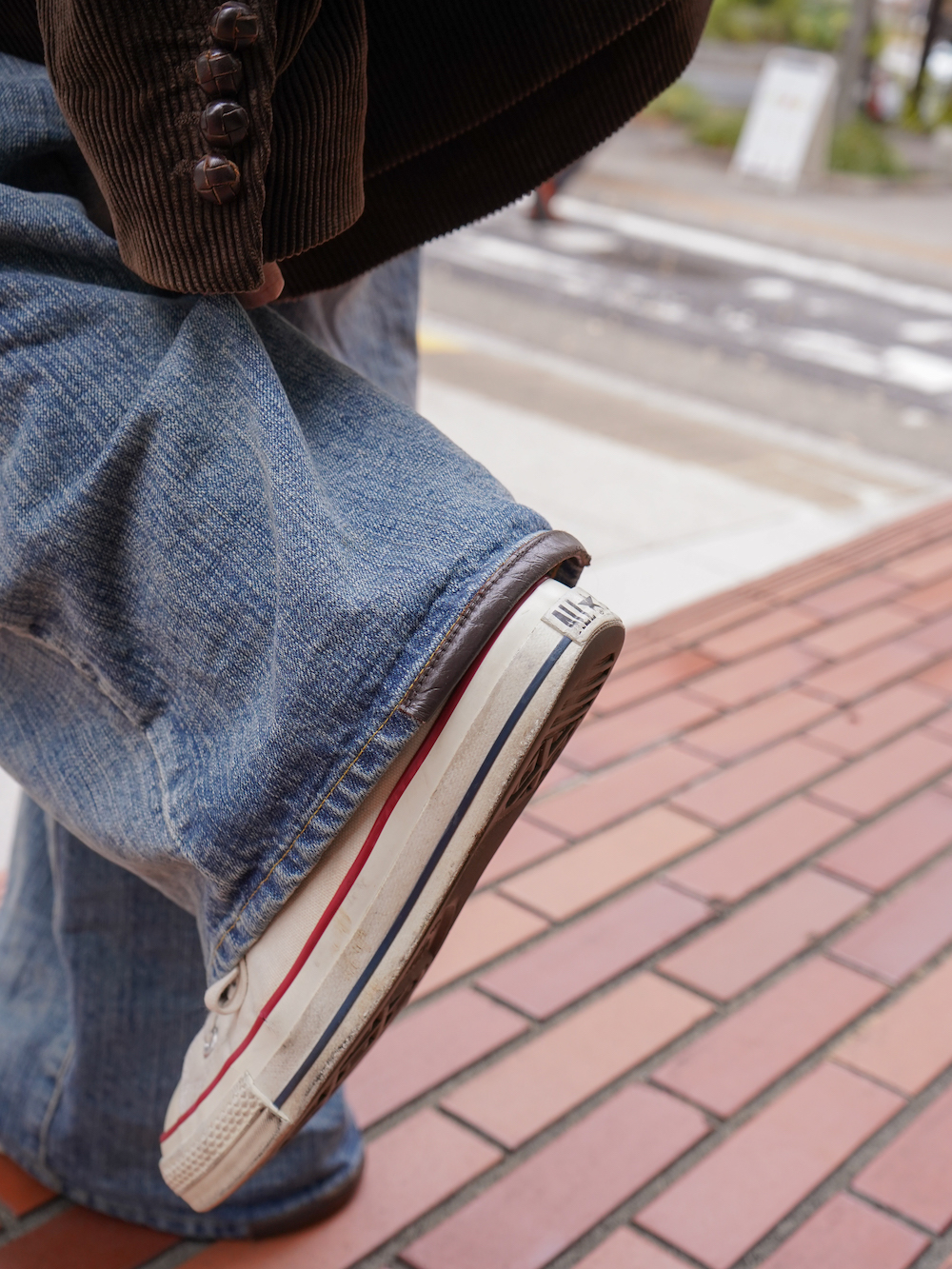 OLD MANはきっとお洒落をするってよりかは、とりあえずそこに有ったから穿いてる。なんならデニムパンツはこれでいいんだよ。って言うと思うので、普段革靴派の僕もこのデニムは履き潰したコンバースとかでちょいダサで穿きたいな〜と思っています。