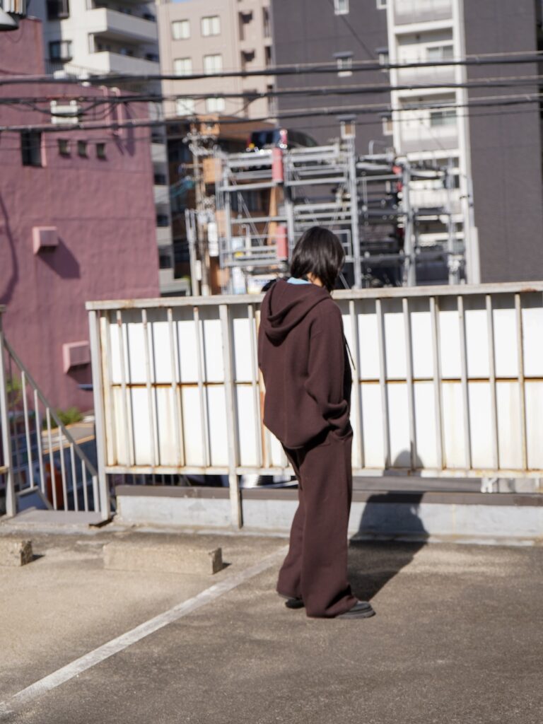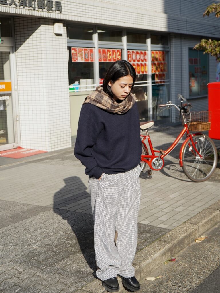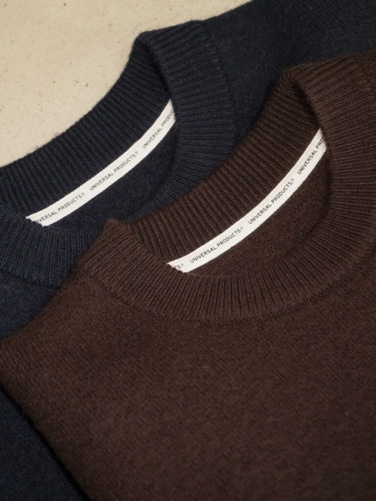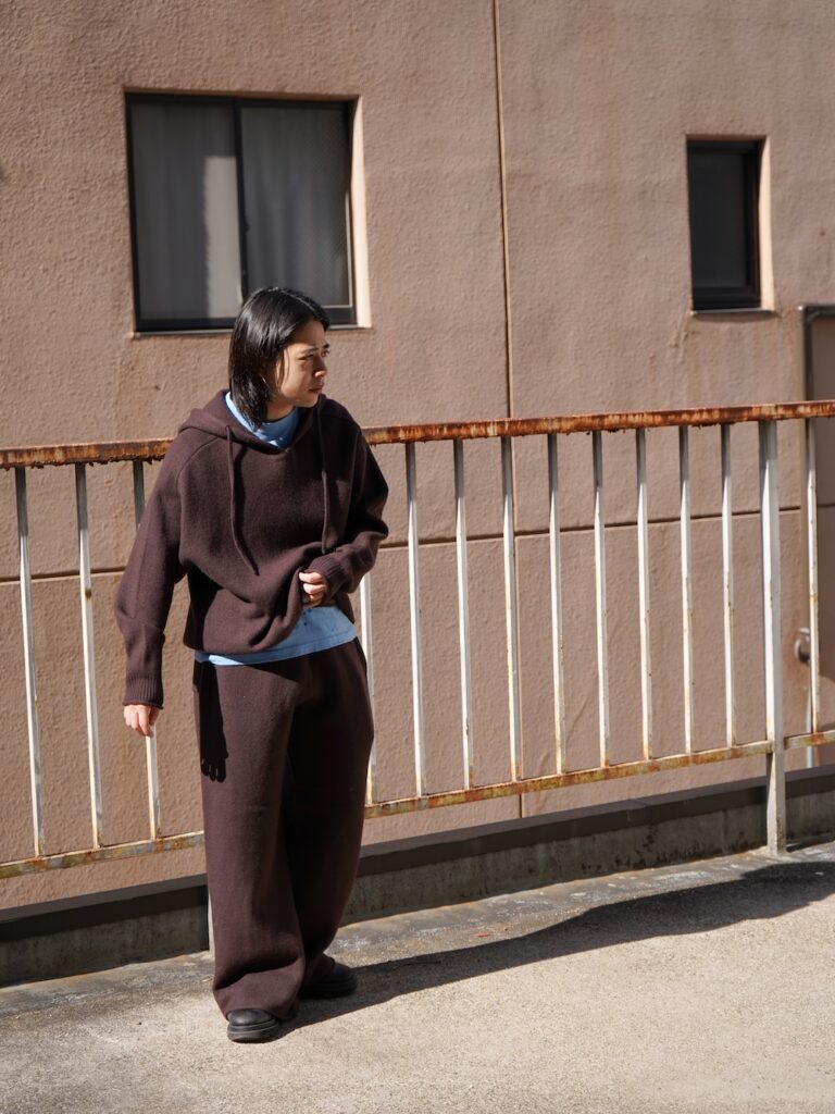 今回のニットにしろ、ユニバーサルの役割は全ての架け橋として繋いでくれる普遍さ。今着たいサイズ感に調整しているからこそのバランス。トータルで見たときに何かしら身に纏っているのがユニバーサルです。いわば、ハンバーグのツナギみたいなもんです。