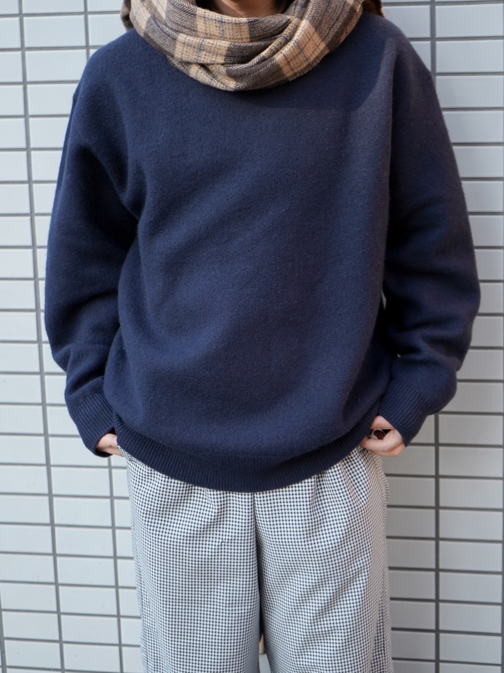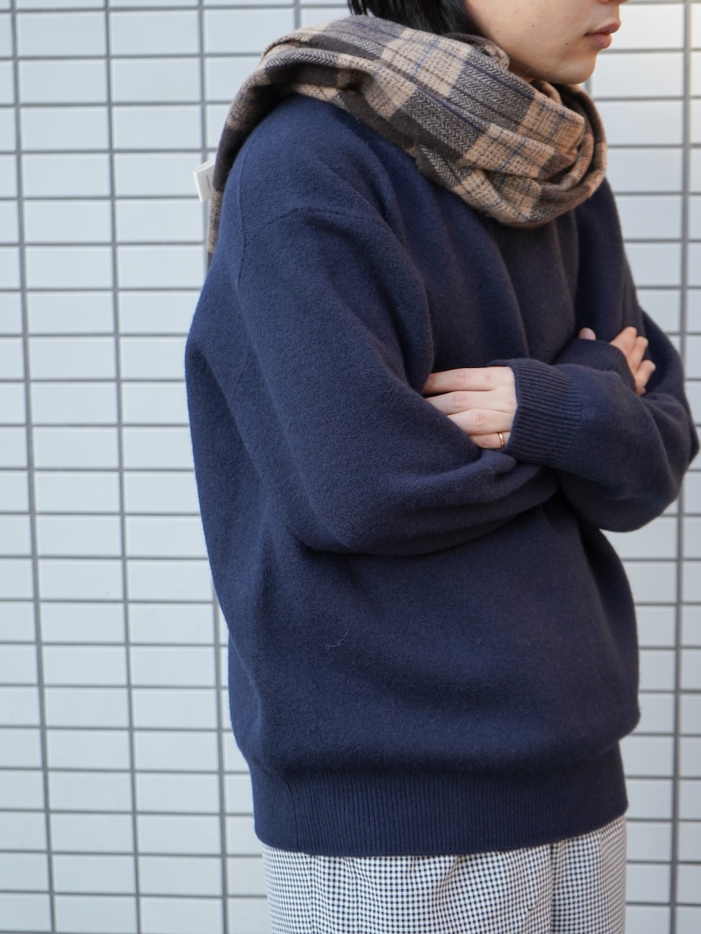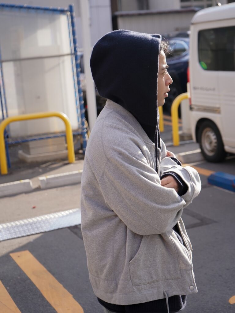 今回のニットにしろ、ユニバーサルの役割は全ての架け橋として繋いでくれる普遍さ。今着たいサイズ感に調整しているからこそのバランス。トータルで見たときに何かしら身に纏っているのがユニバーサルです。いわば、ハンバーグのツナギみたいなもんです。