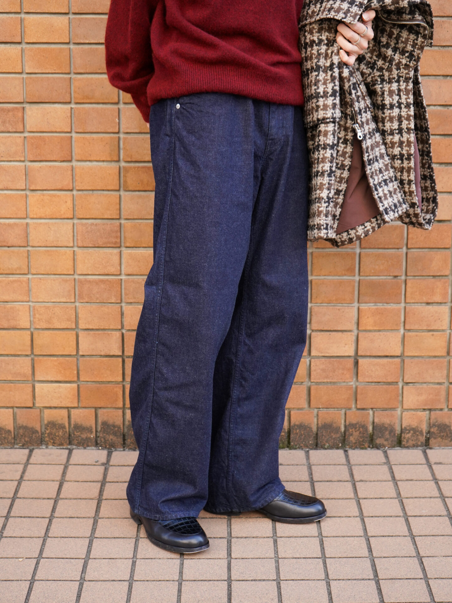 合わせのとこでいえば、結局デニムなので自由な発想で取り入れては欲しいです。ただ、個人的には綺麗なパンツということで、革靴で合わせたい気持ちが強いです。スニーカーだとしてもソリッド寄りなものを選びたい。気合いを入れてるつもりは無いですが、そんな感じになってしまうくらいの心意気が大事だと思っています。