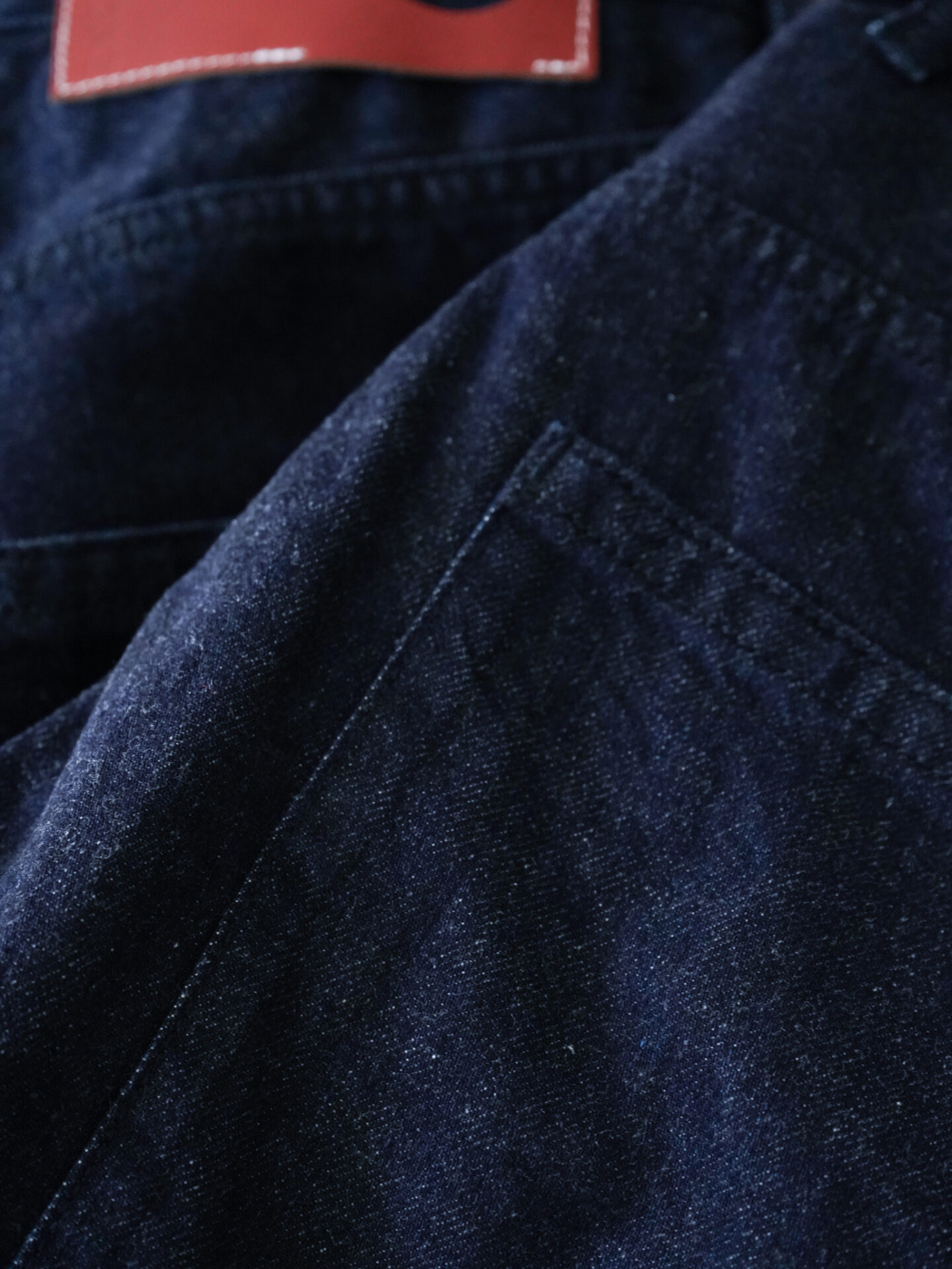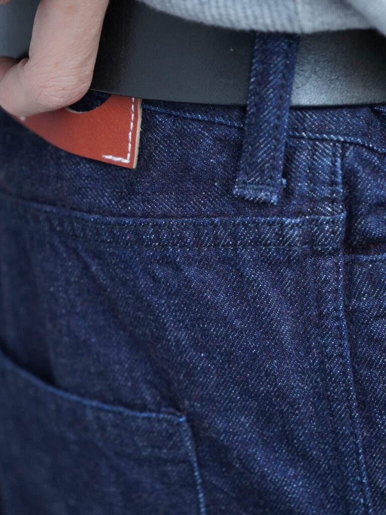 その特徴としては少し甘めで柔らかな質感に織られた12ozの少し軽めの生地。全体的な色味も少し濃いめのインディゴであり、ステッチも同色にすることで全体的に上品な印象のデニムになっています。デニムだからの粗野な印象を感じさないこの綺麗さをスラックス型ではなく、5ポケット型を採用しながら表現しているのがすごいなと(厳密には6ポケットなのですが)。