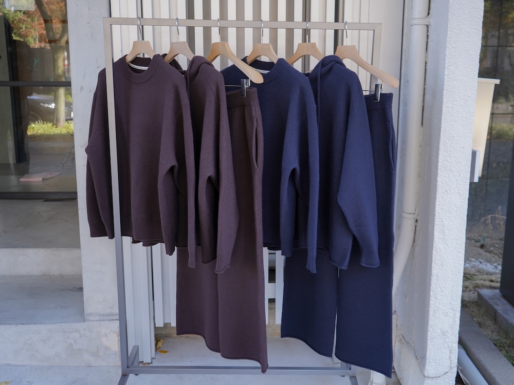 楽が先に来るスタイルではなく、かっこいい、と素直になれるニットのセットアップです。