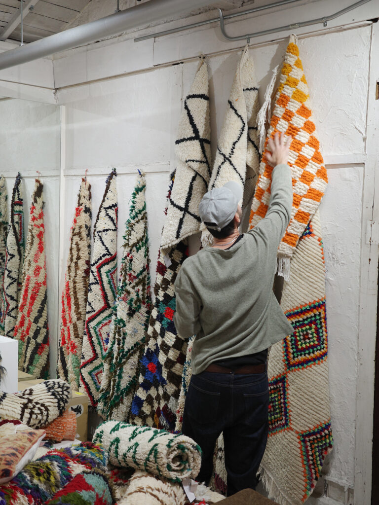 今回ご用意したラグたちはZarabiyaオーナーのルイさんという方がキュレーションしたもので、現地で直接買い付けたものをこうして各地のショップとコラボレーションしながら店頭販売したり、オンラインで販売したりしています。