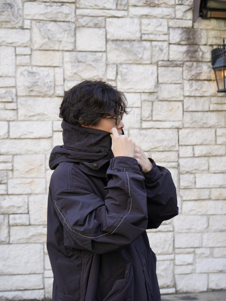 個人的に気に入っているのが首のディテール。US ARMYのフィッシュテールコートをベースとしていると思うのですが、首フロントのテープによってフードも含めて首周りに立体感を生むことができます。この閉めた時が抜群にかっこよくて一番心を打たれました、、、