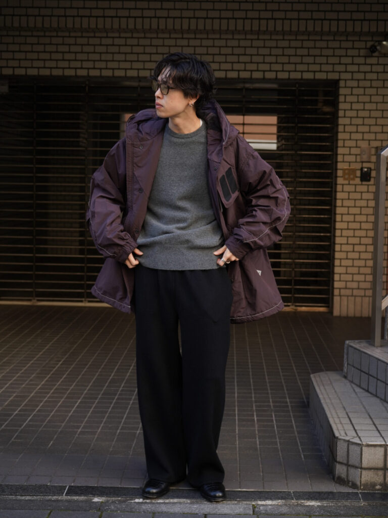 and wanderだからというある種の安心感で機能面に強く目を向けず、直感、感覚的にピックしたコート。実際に経験をすることで両軸の強みをさらに理解できたいい機会を得れました。アウトドアな洋服が広く一般的にファッションの舞台で受け入れやすくなっている今だからこそ、よりファッション的角度も強め、本来の機能によって日常を生きる私たちの助けになる部分をand wanderを通してこれからも伝えていきますね。