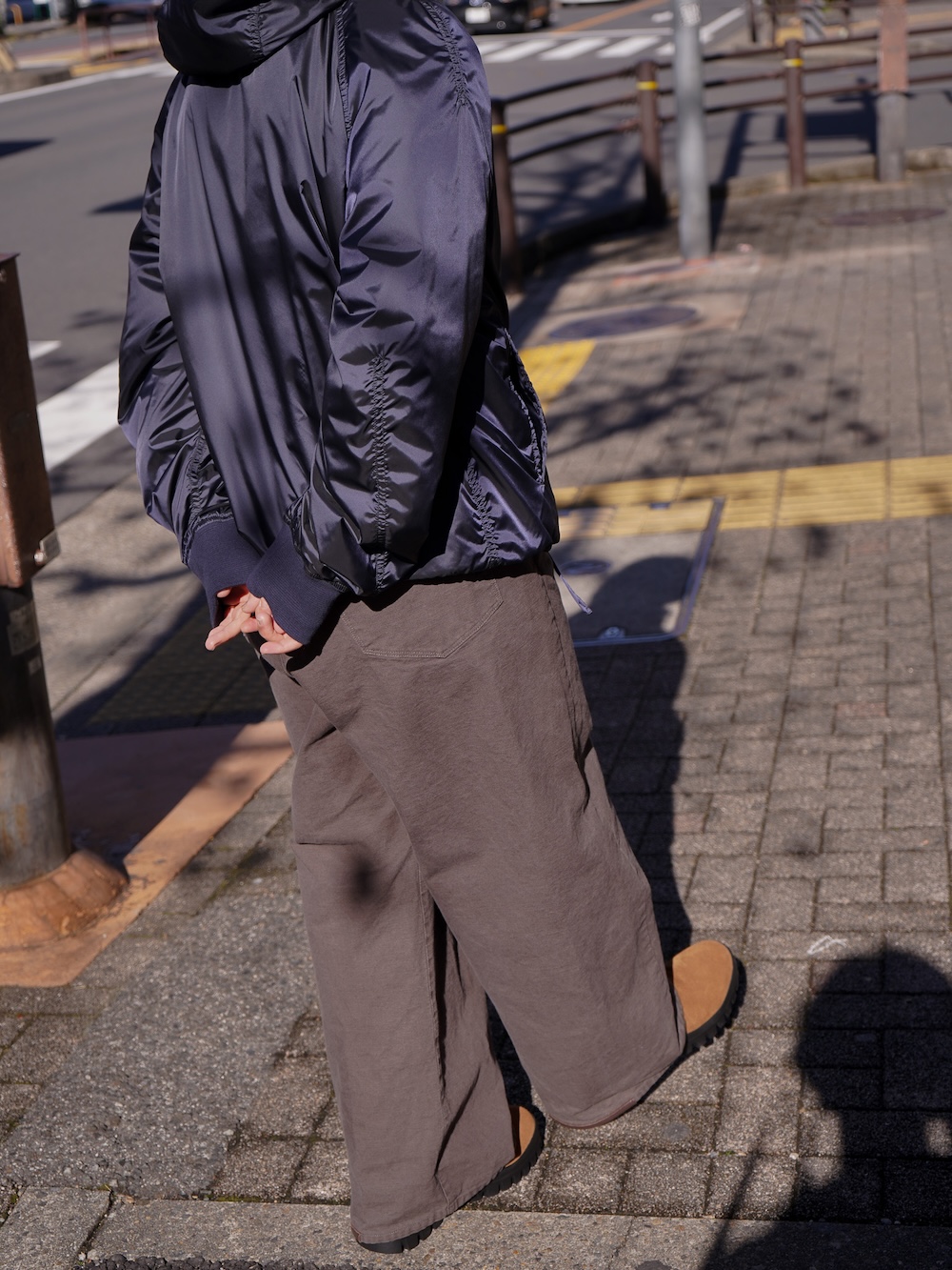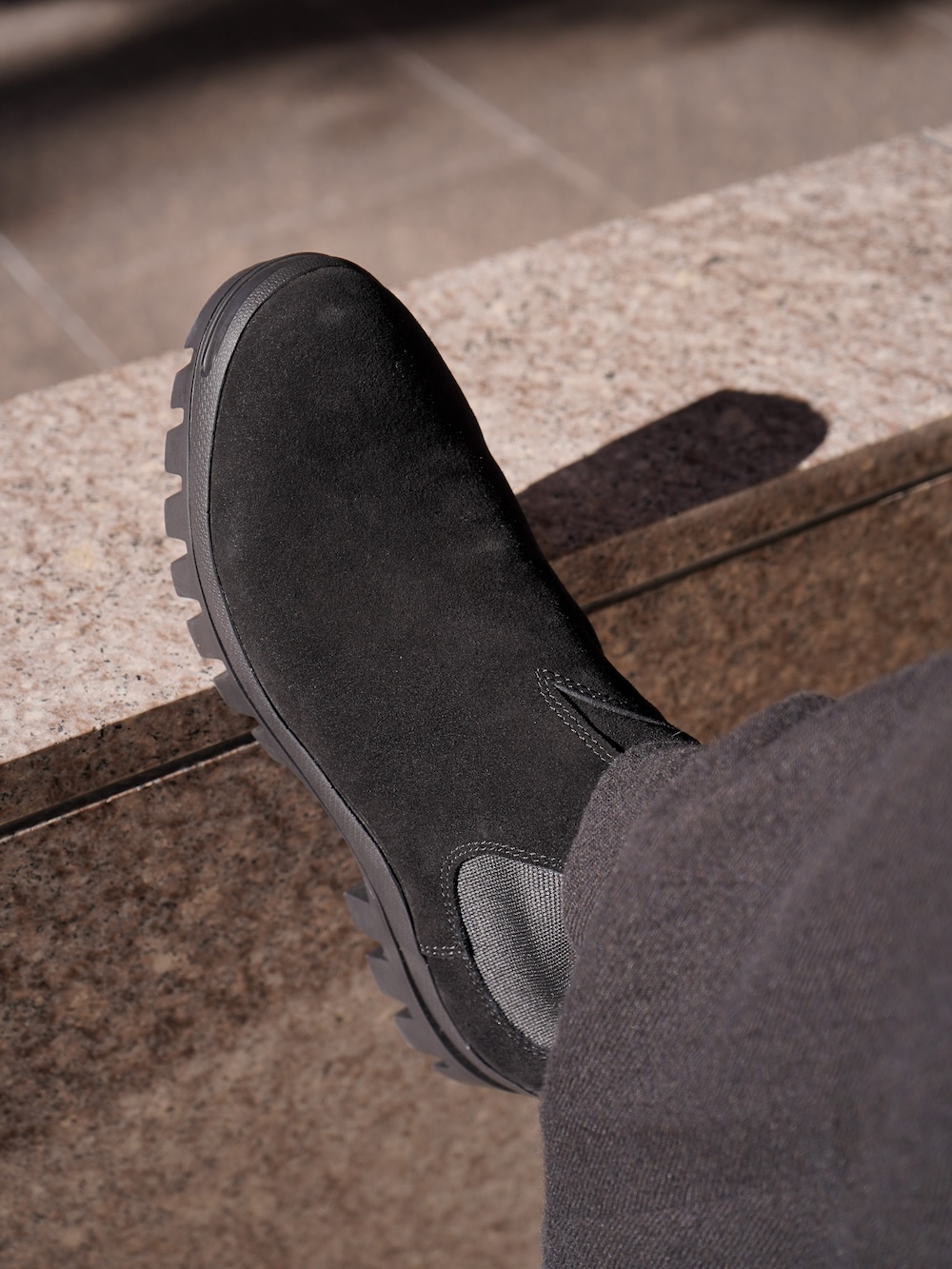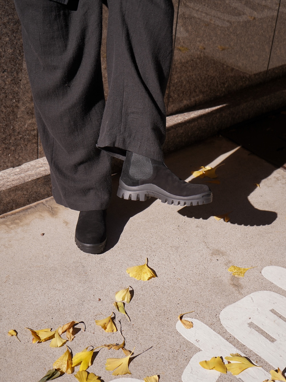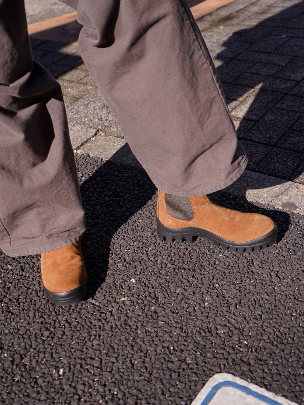 ガムソール自体がカジュアルな空気感を纏っているのでリラックスしたジャケットやパンツがしっくりきました。