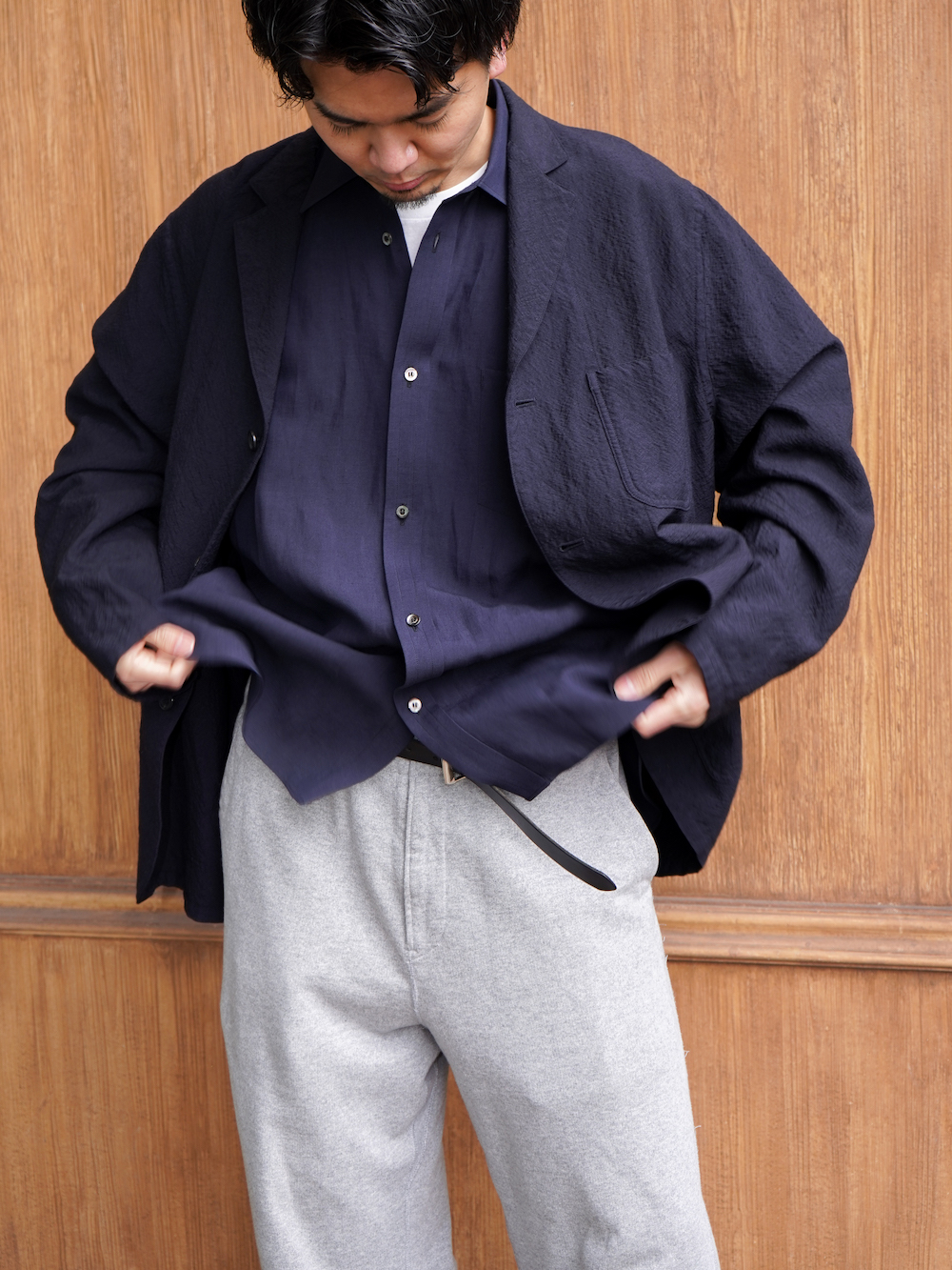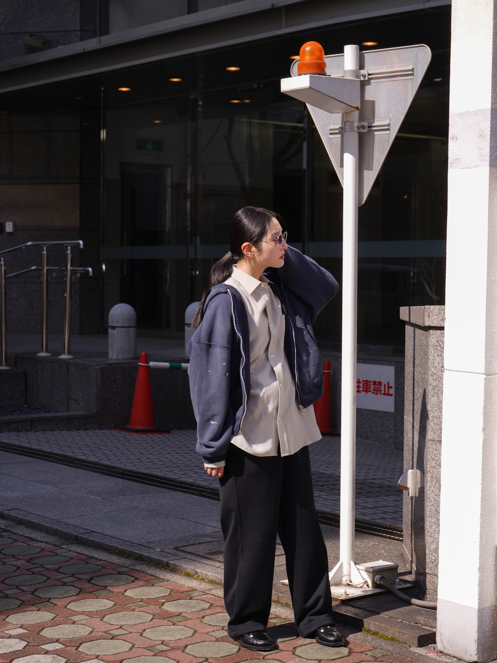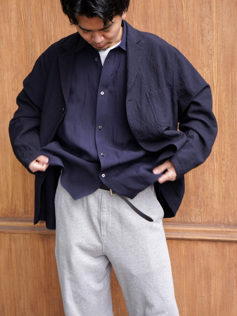 そんな彼女が素直に良いと思えたのは、自然と身体に沿ってくれるような柔らかい落ち感によって堅苦しさを取っ払ってくれた事が大きかったんじゃないかなと思います。(レディースのお客様も少し緩めのサイズ感がお好きな方はぜひお試しください!)