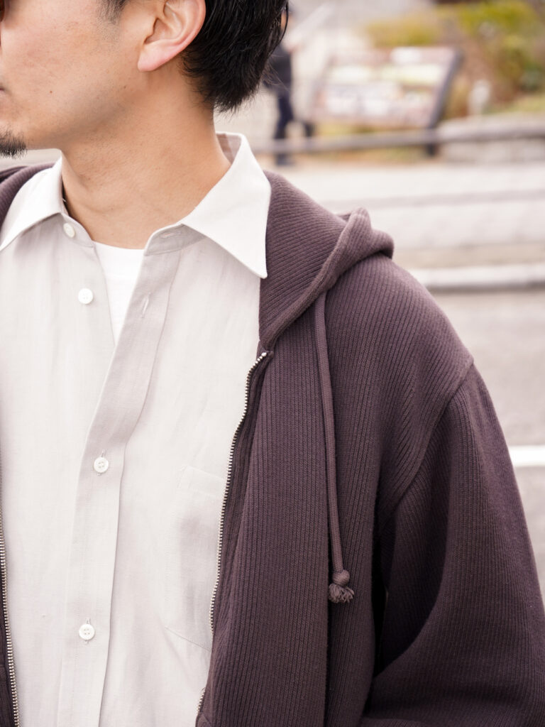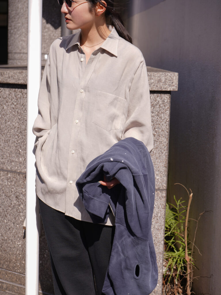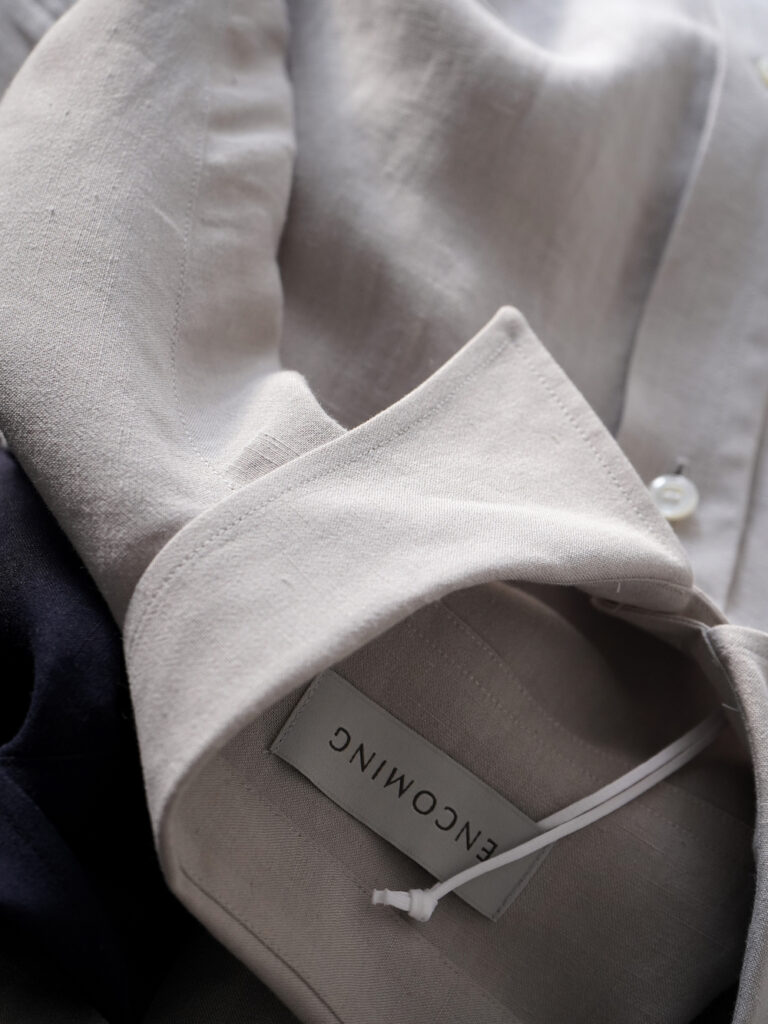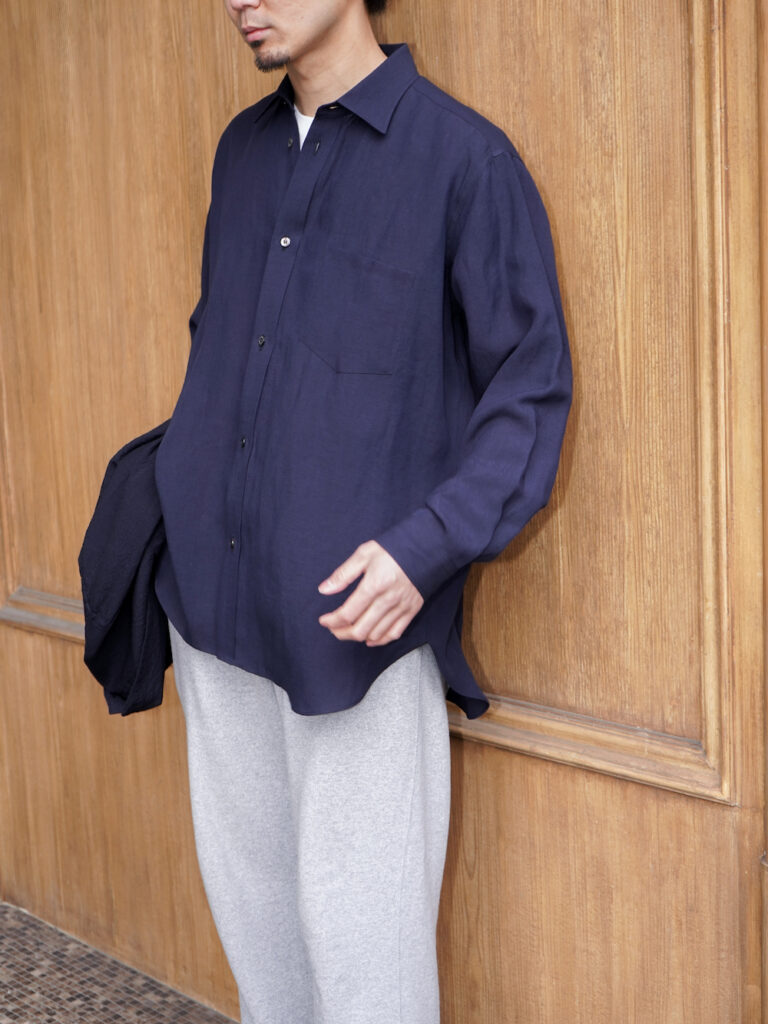 日本での生活に寄り添った素材選びをしながらもブランドの”らしさ”を追求する姿勢に僕は強く惹かれましたし、リネン好きの自分から見ても新鮮さを感じ取ることができたので、このシャツは自信を持ってご紹介していきたいと思っています。