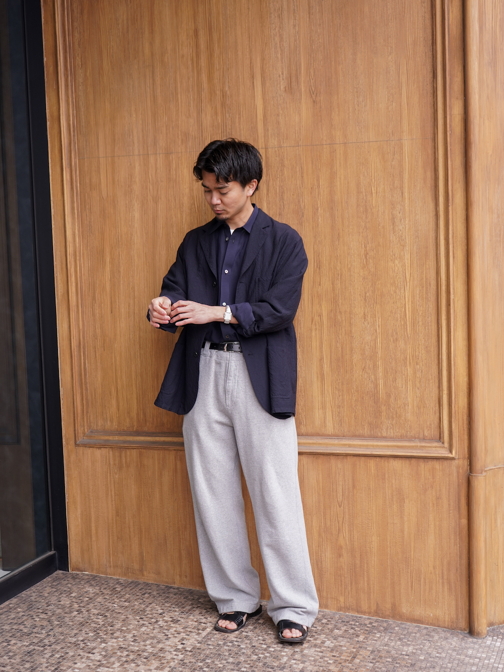 そこが噛み合ったのは今の自分の気分的なところも大きく関係しているとは思いますが、先ほどまでお話しした生地感やディテールにプラスして、サイズ感(178cmでサイズM)が極端に大きすぎることなくスタイリングが組みやすかったところにある気がしています。(継続して気分なジャケットスタイルのインナーにもおすすめです、、、!)