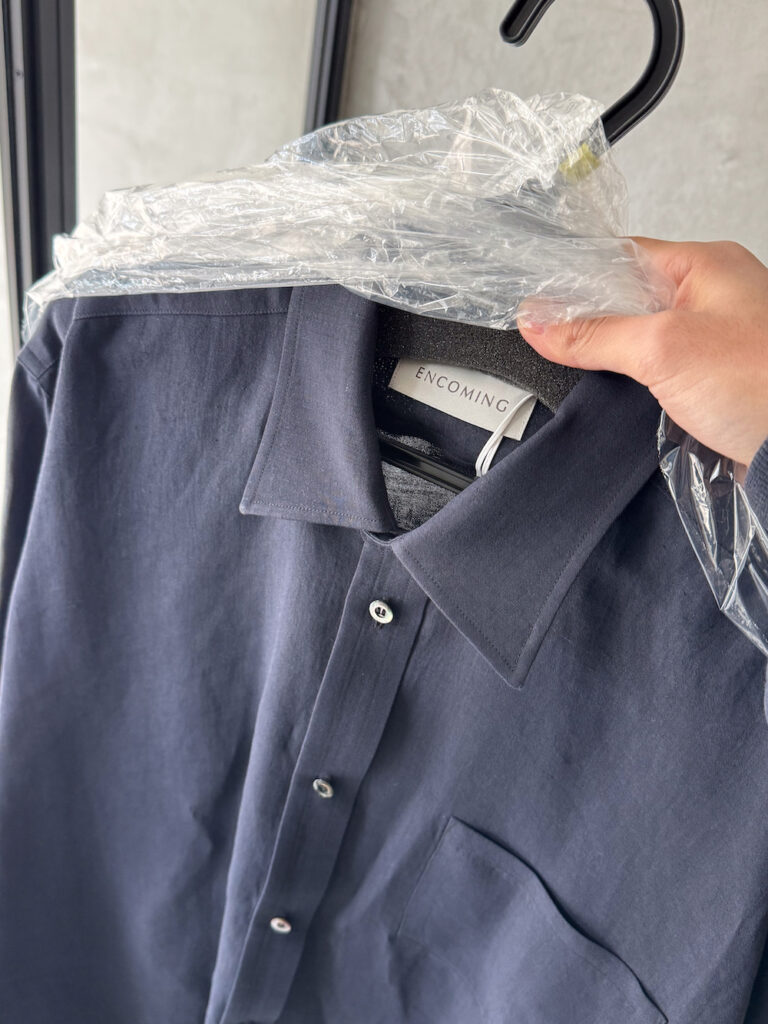 ちなみに個人的にはネイビー推し。またネイビーかいっ!って感じは自分でもするんですけど、意外にもシャツのネイビーはスタイリングでしっくりくるものがこれまで少なく手元に無かったんです。