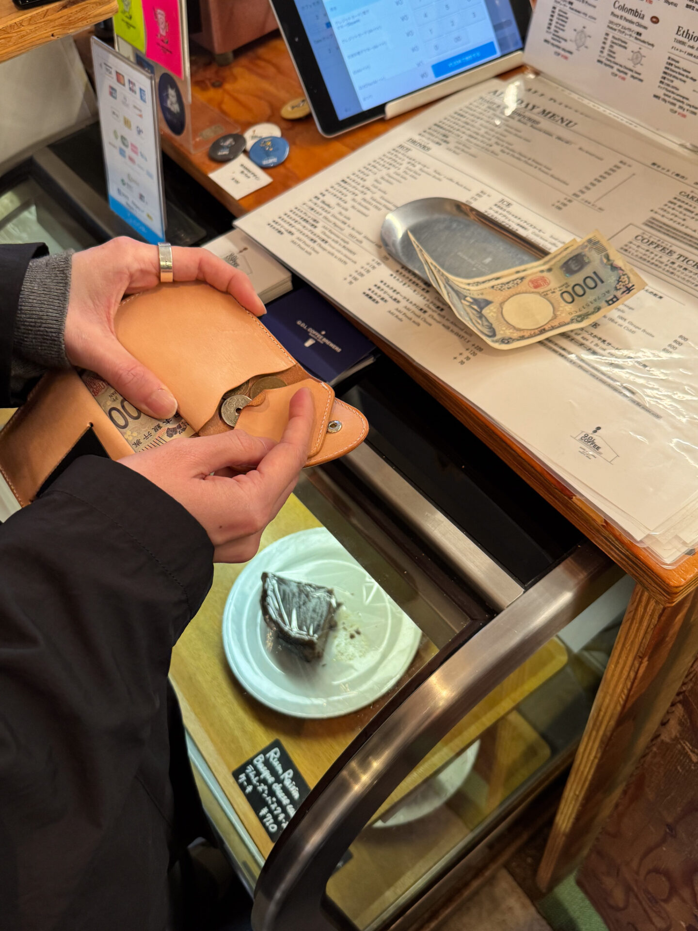カードも必要最低限。僕の新品の状態だと4枚がマックスかなと。柔らかくなったらもう少し入るでしょうが、ここも昔と変わった点で、ポイントカードなどが電子化やアプリになったことで圧倒的に所持するカードの枚数が減りましたね。意外と使っていないカードがそのまま財布に入ったままだったりするのでこの機会に整理してみてもいいかもしれません。だいぶ枚数減りますし、スッキリして気持ちいいですよ〜
