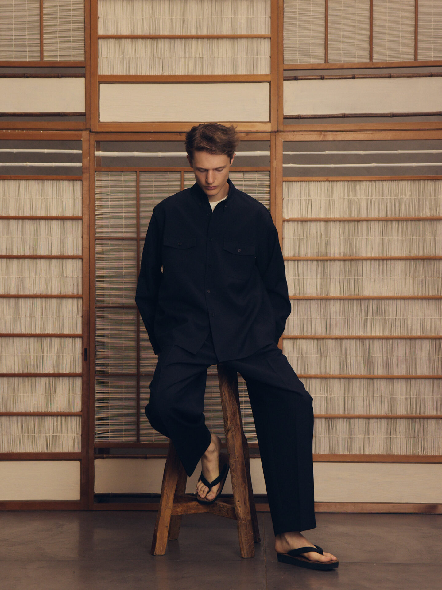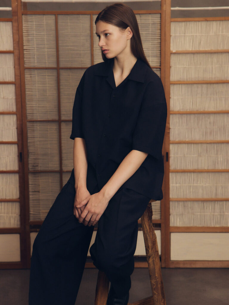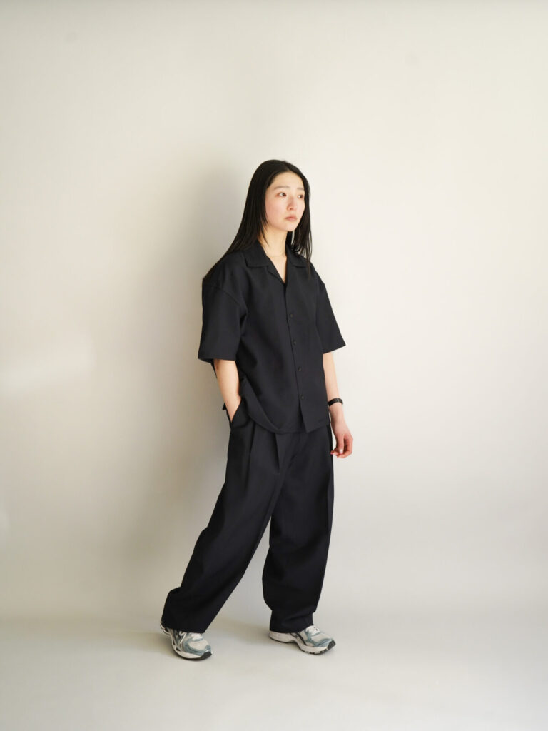 annexではあまり馴染みがない方の生地でありますし、今回はコンセプトをダイレクトに感じたくてセットで着ていますが、それぞれを独立して見たときに、デニムにこう合わせようかな、ショーツでこれもいいかもとスタイリングを想像すると僕は自然に馴染むのかなと感じています。