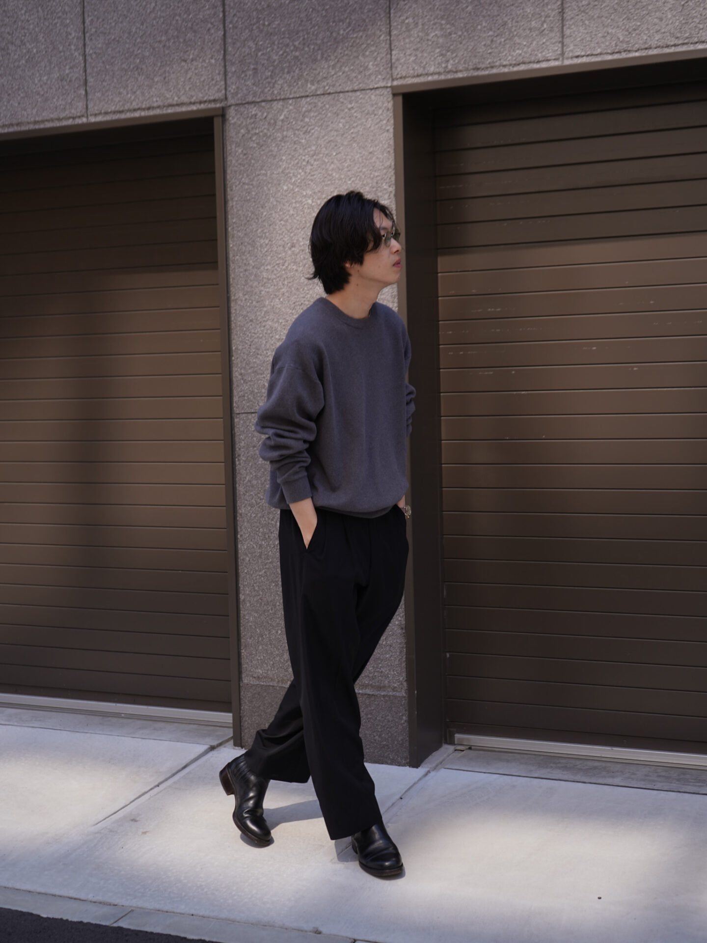 コロナが終わりを迎え生活様相も変わってきた中で、ジャケットやスラックスなどの綺麗なニュアンスの洋服が再び盛り返してきている中、ニットの選択肢を入れて欲しいです。特に極端に綺麗な印象になるジャケット、スラックスはあまり馴染みがないと手が出しいくいですが、ニットはそれよりもっと手前にいるので着たらなんとかなるし、着たら印象変わるので凄くとっつきやすいと思っています。