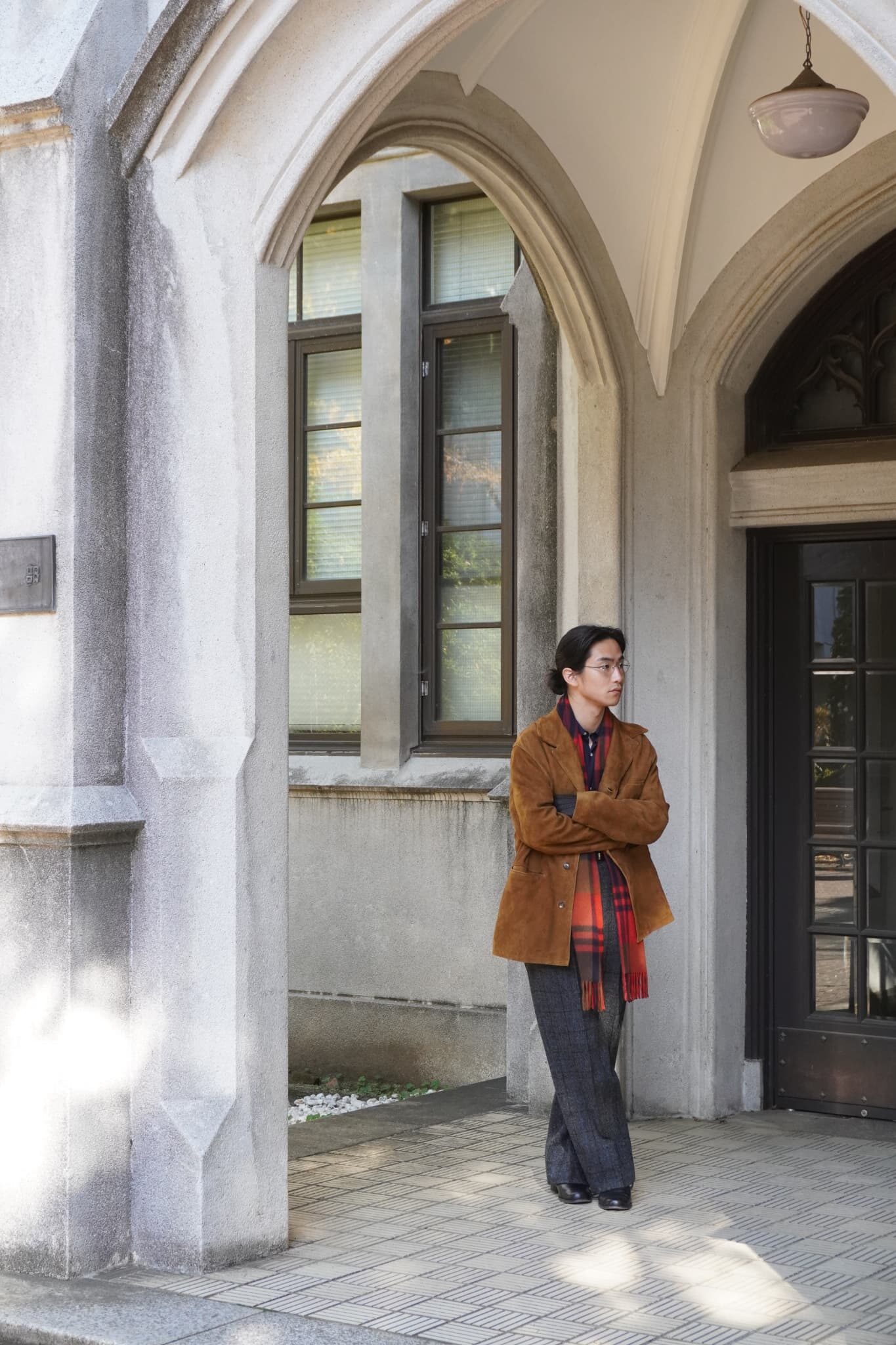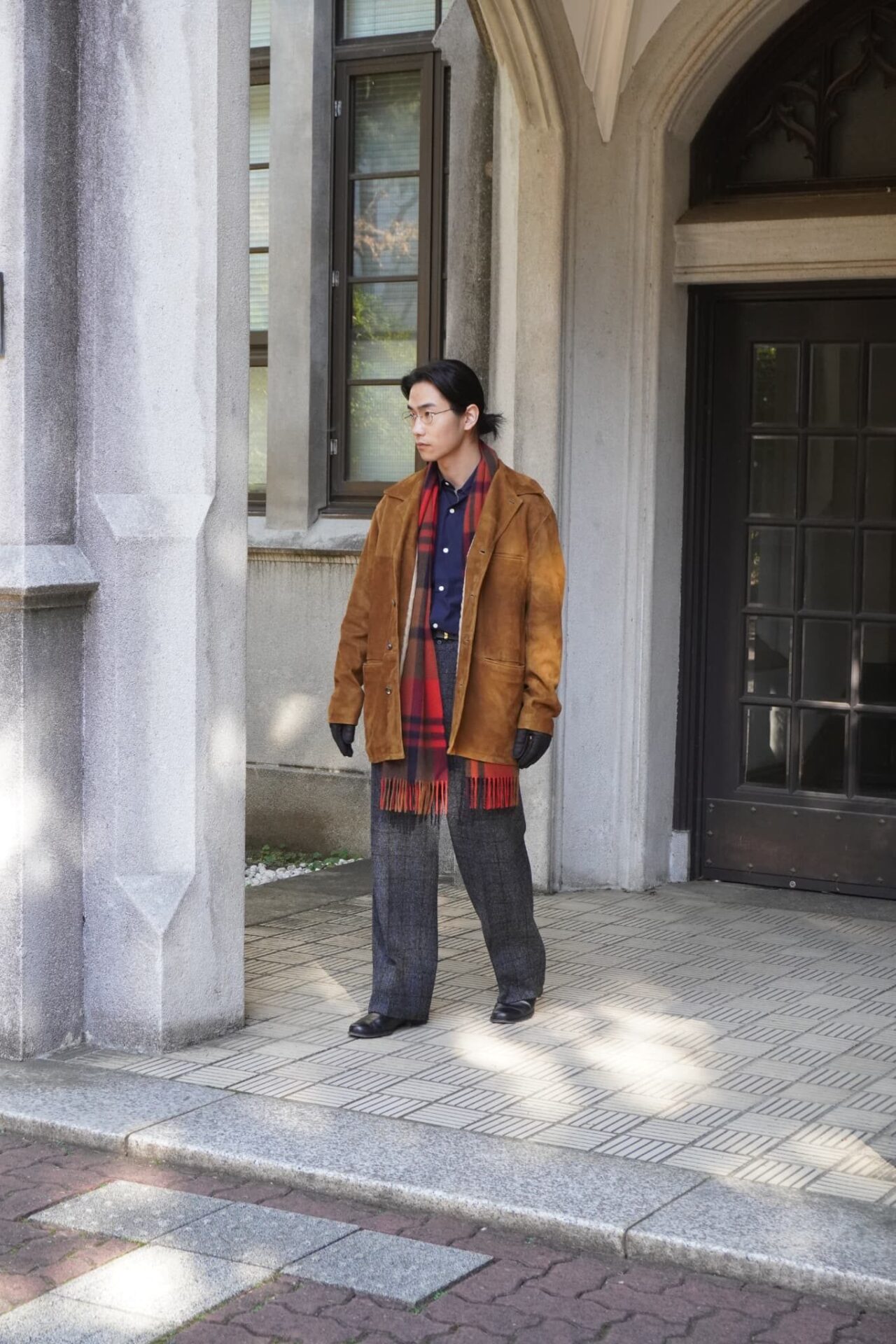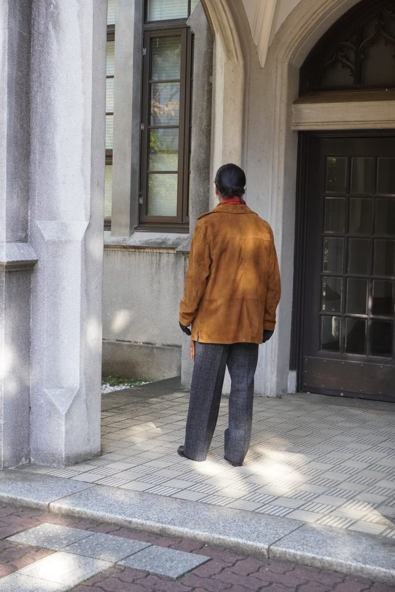 セットアップでの着用を想定して、ウールの素材上ゆとりを持たせるべき箇所は持たせ、外からも見える足元は綺麗に。計算された緩急の付け方が本当に圧巻。