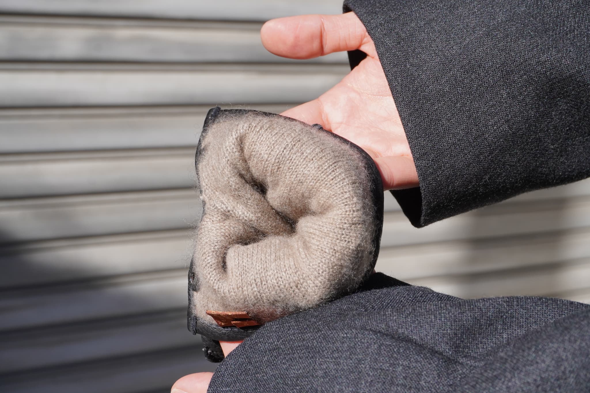 縮絨と言っても単に湯通ししているわけではないのが、着ればわかります。実験を重ねて独自の調理で編み出した、途方もない苦労を感じる一着です。