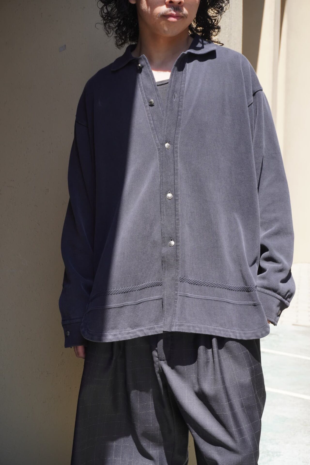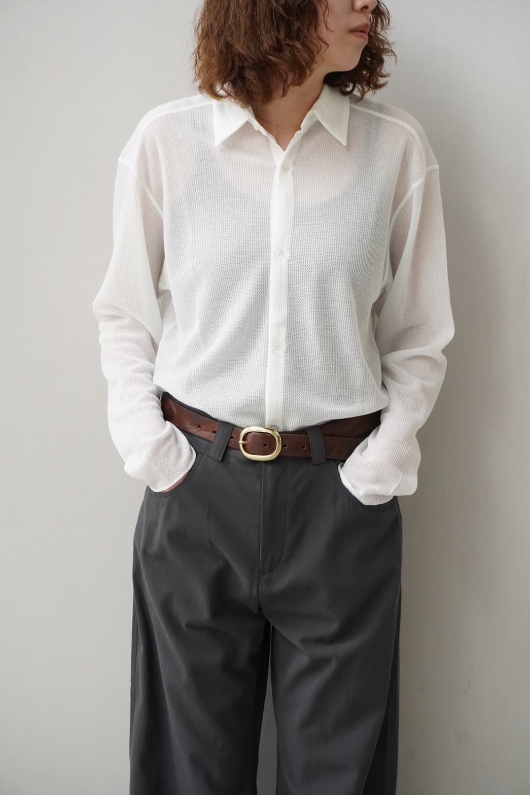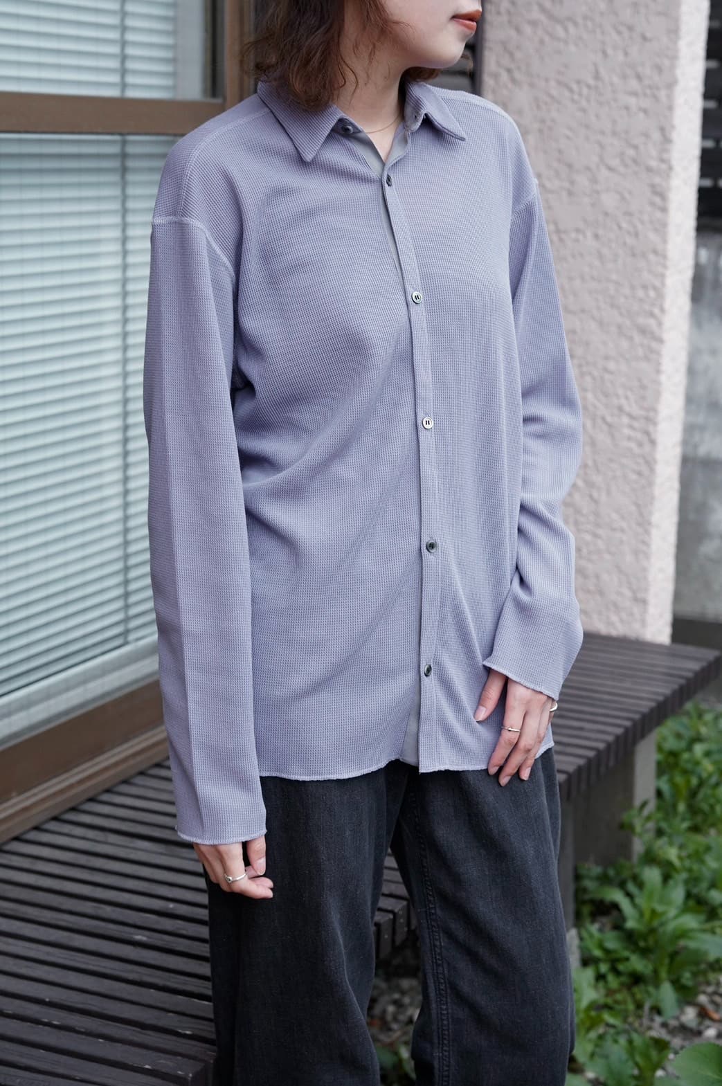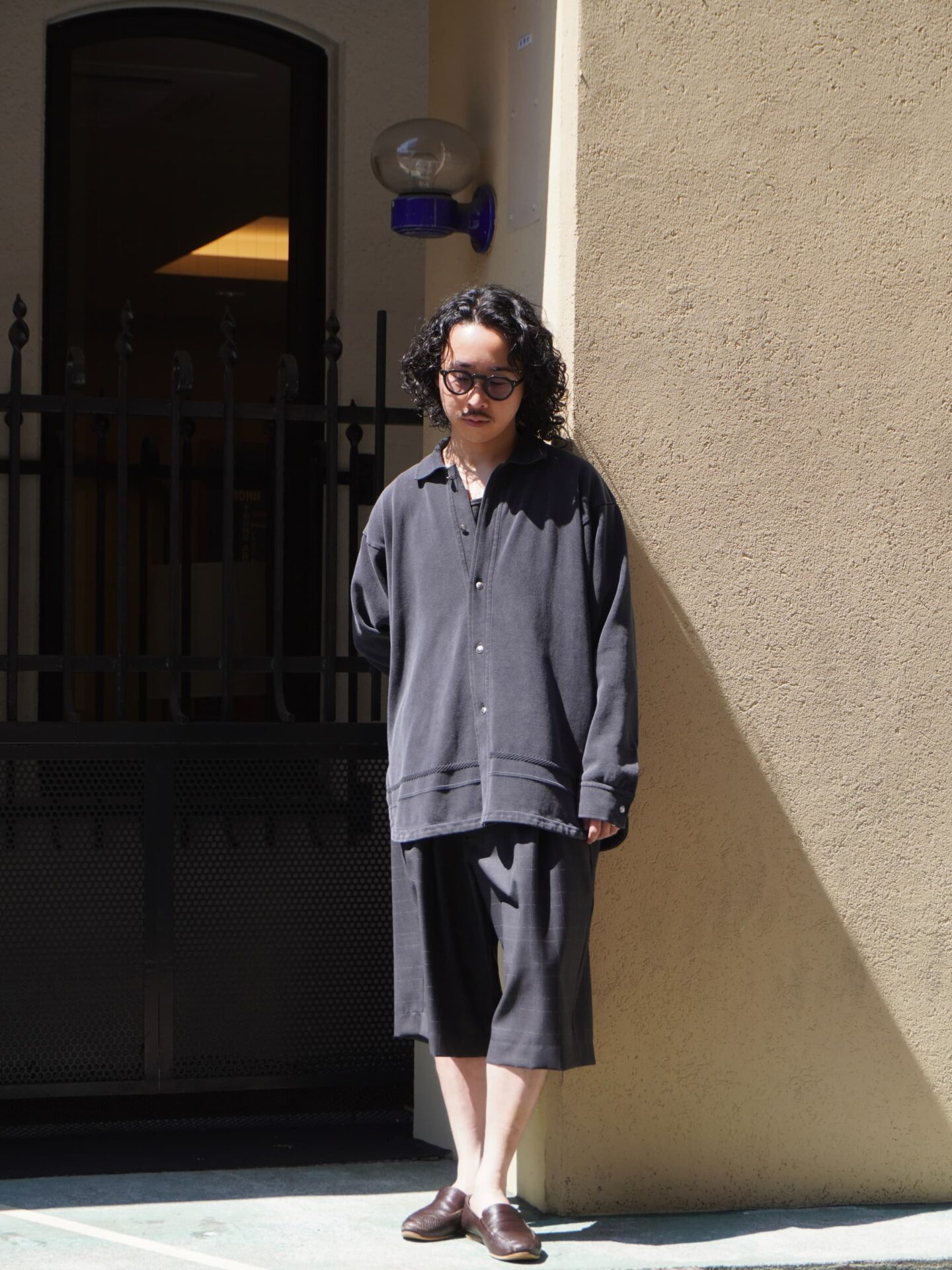 ゆったりと余白のあるシルエット、凹凸のある肌離れのいい生地感なので、夏場もさらっと羽織りたい一着となっています。