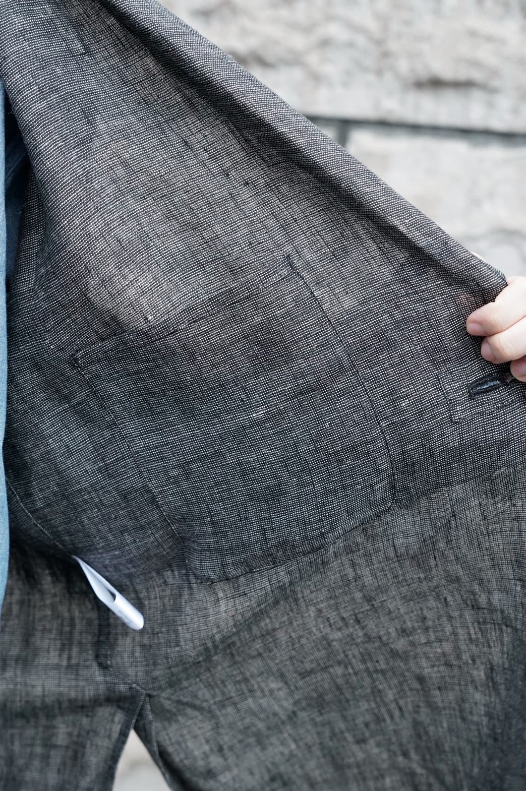 無骨な漢らしい生地に仕上がっていますが、遊び心のあるディテールを入れることで中和されているように感じます。